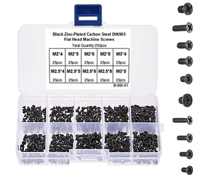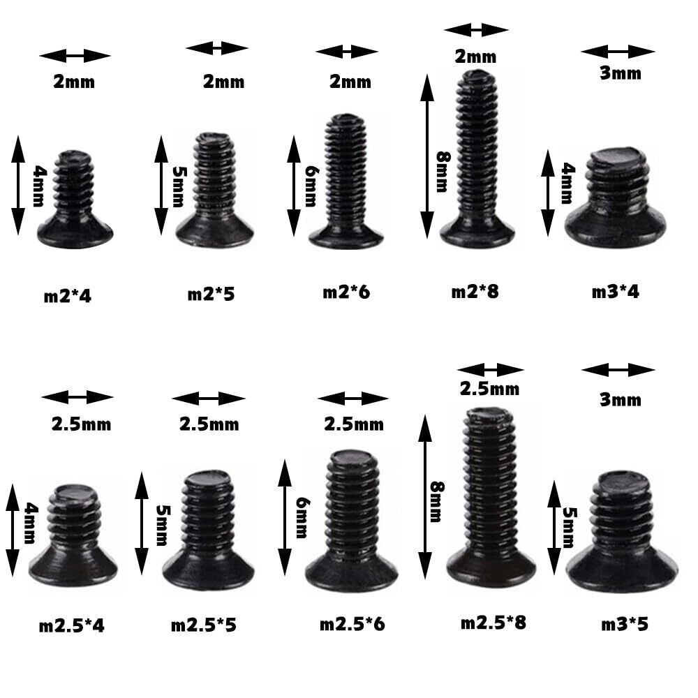 [セット内容】10種類のサイズのノートパソコン用ネジ:M2*4* 25個、M2*5* 25個、M2*6* 25個、M2*8* 25個、M2.5*4* 25個、M2.5*5* 25個、M2.5*6* 25個、M2.5*8* 25個、M3*4* 25個、M3*5* 25個。様々なニーズに適しています。