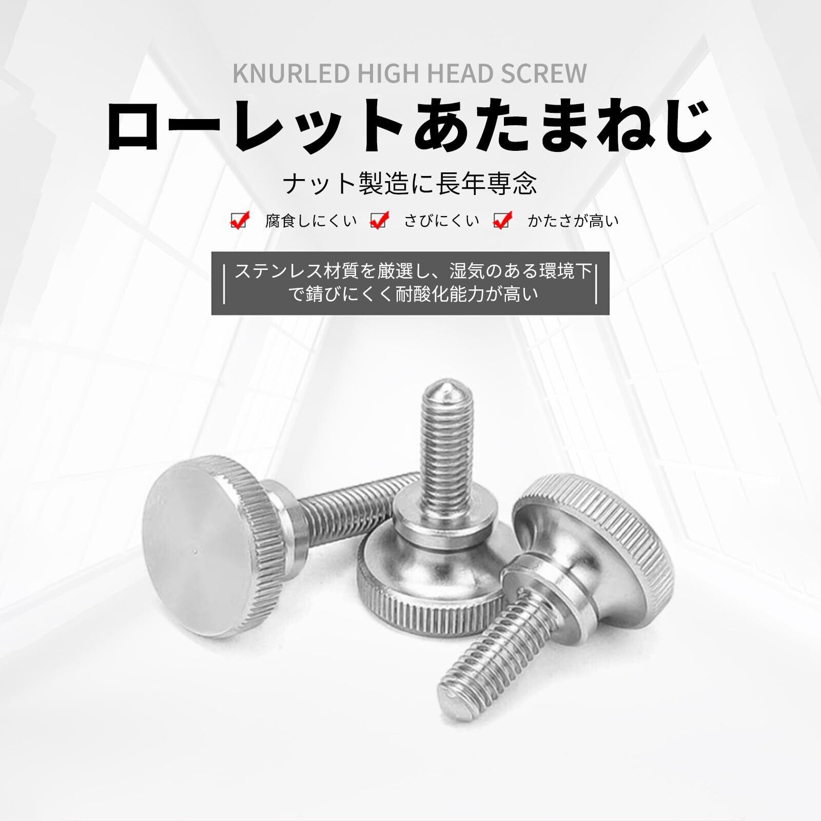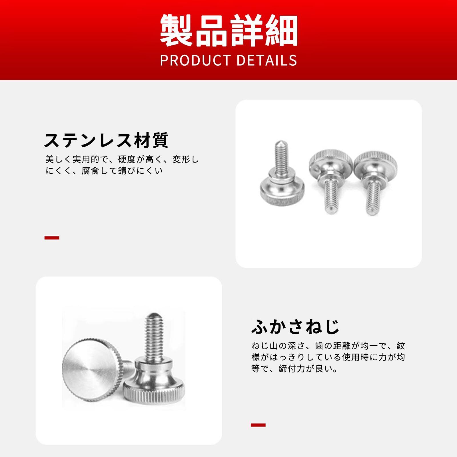 【使い易い】 工具は必要ありません。手で回しやすいローレット付きのつまみねじです。ローレットヘッドのつまみネジは、しっかりとしたグリップと滑らかな表面を提供し、手でファスナーを締めたり緩めたりするのを容易にします。