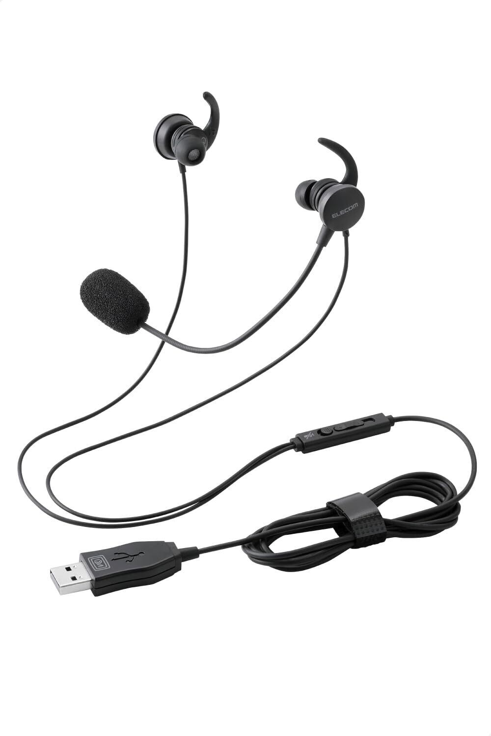 エレコム 有線ヘッドセット USB マイク付き インナーイヤー カナル型 両耳 ブラック ECHS-EP21SUBK
