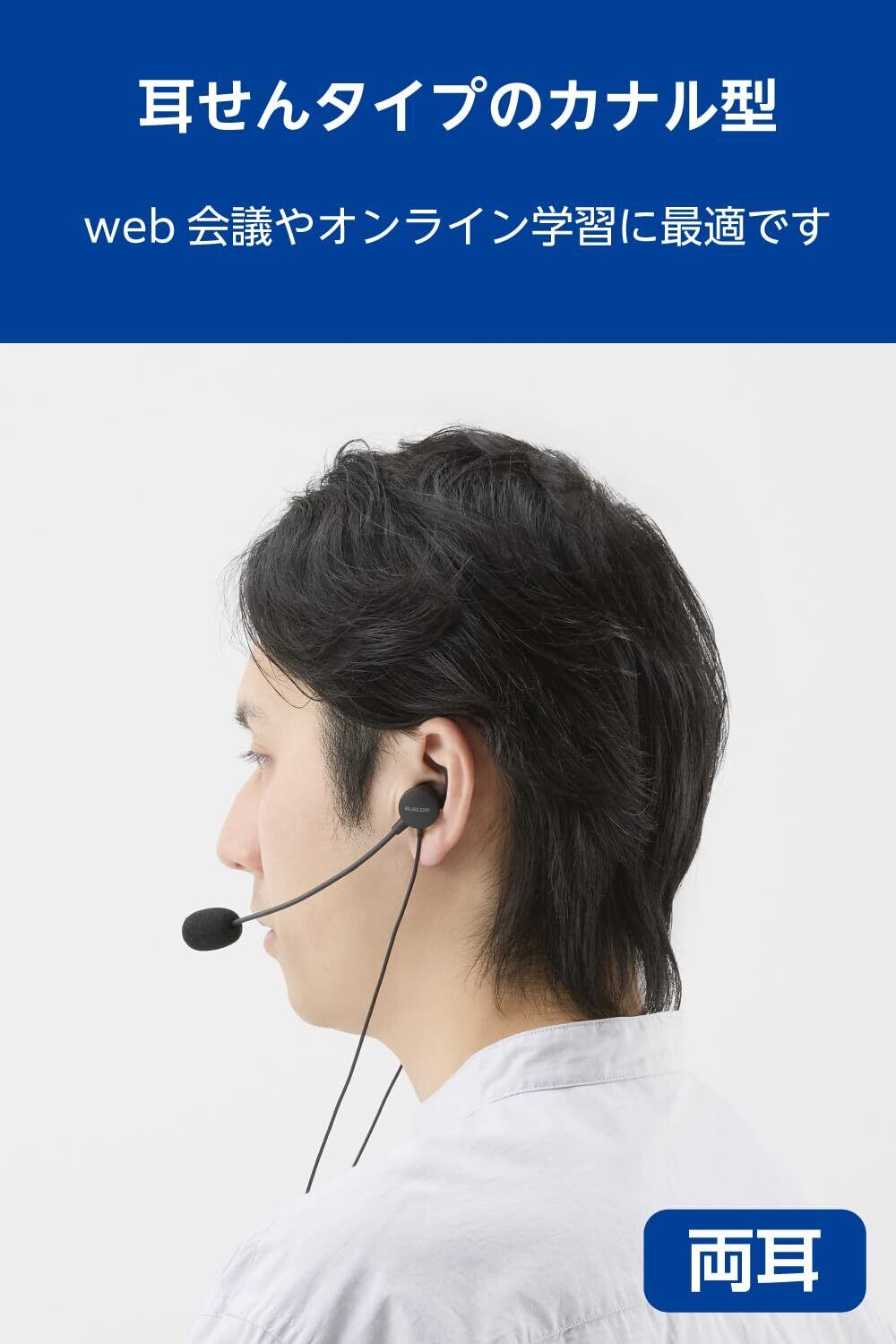 Web会議やビデオ通話、オンライン学習やオンラインゲームでのボイスチャットに適した、マイクアーム搭載の両耳耳せんタイプのカナル型有線ヘッドセットです。