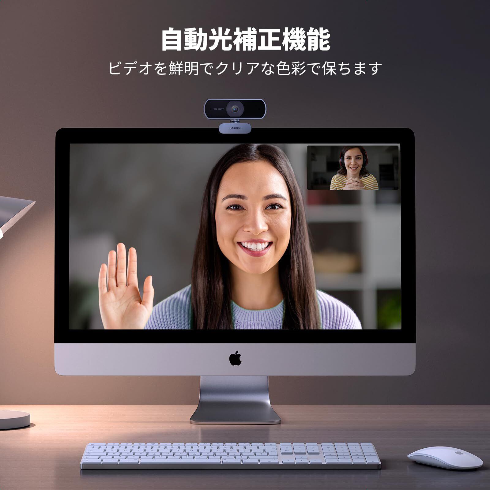 UGREEN ウェブカメラ USB Webカメラ フルHD 1080P 200万画素 マイク内蔵 自動光補正 85°超広視野角 PC カメラ クリップ/スタンド式 Windows 7/8/8.1/10/11 Mac OS Zoom/Teams/Skype/ライブ配信用 在宅勤務・授業・会議用