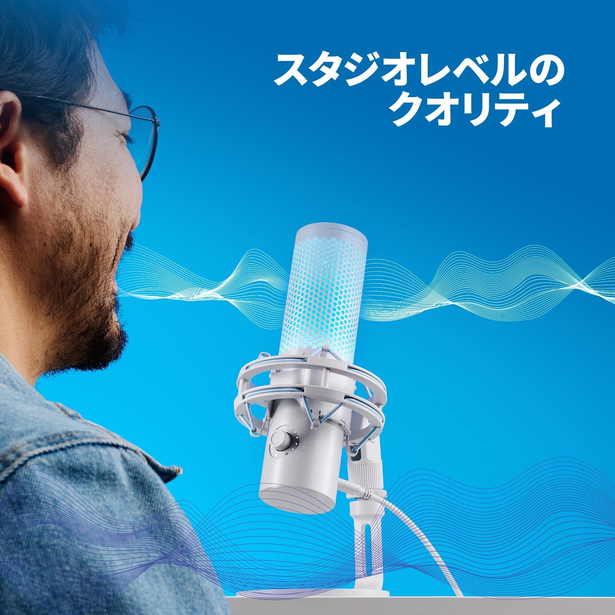 HyperX QuadCast 2 コンデンサーマイク USBマイク ストリーマー/コンテンツクリエーター/ゲーマー向け/PC Mac 2年間のメーカー フロスト AN1D9AA