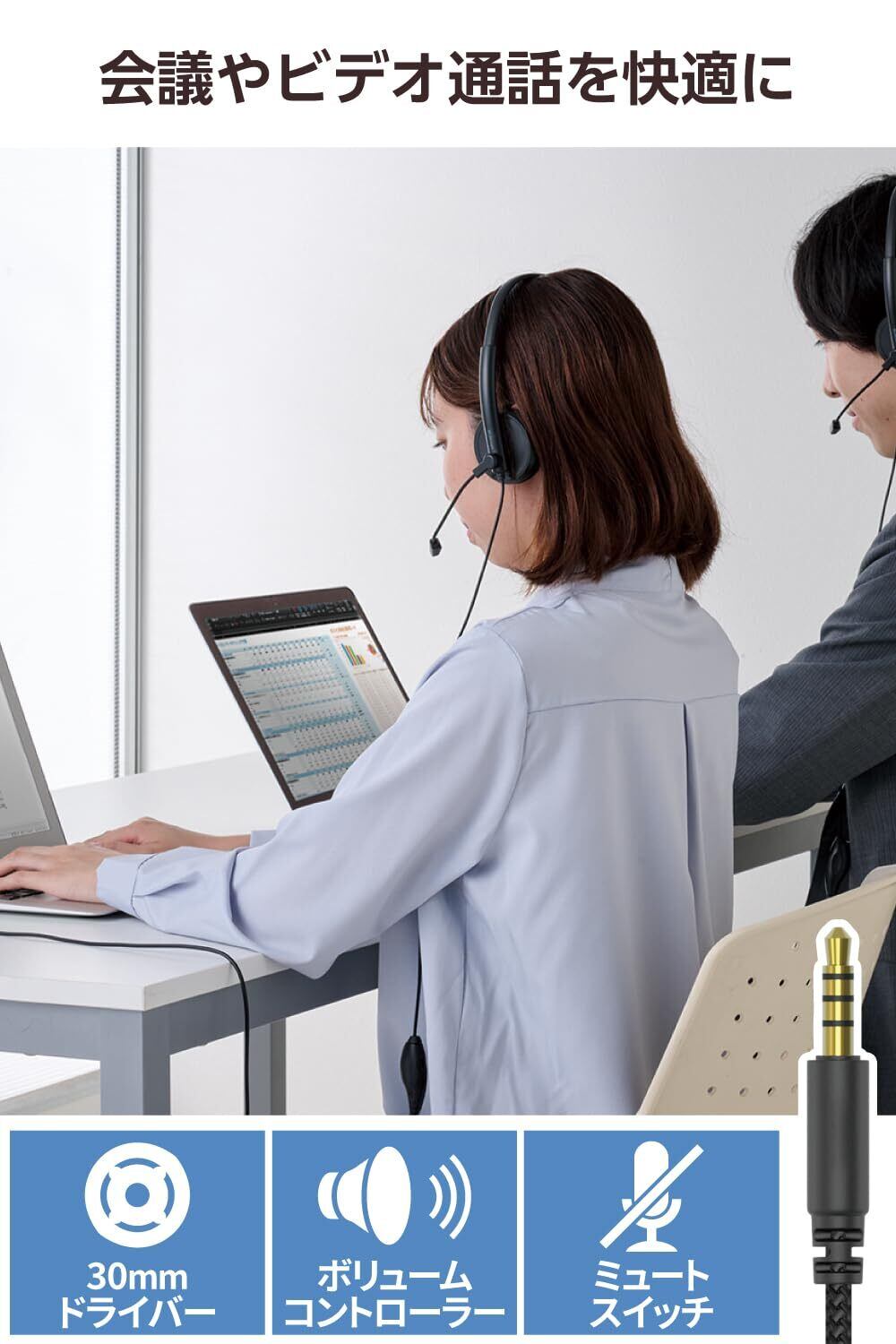 エレコム ヘッドセット 4極 3.5mm ノイズキャンセリング 単一指向性 軽い 有線 マイク付き ヘッドホン 長時間 ウェブ会議 テレワーク ブラック HS-HP06STBK