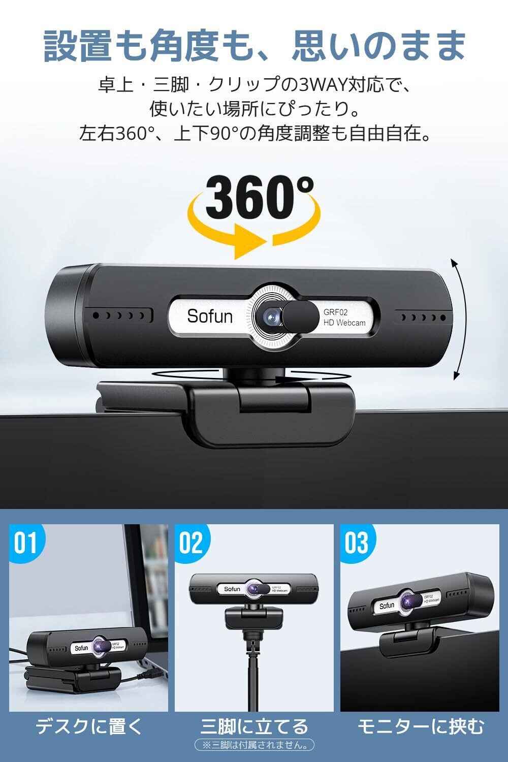 【90°広角レンズ&自由な角度調整】 90° の 広角レンズ で、ひとりはもちろん複数人でも画面にしっかり収まる ウェブカメラ 高画質 。さらに左右360°、上下90°まで自在に 角度調整 できるため、設置場所を選ばずストリーミングやオンライン授業などにも活躍する WEBカメラ 小型 です。