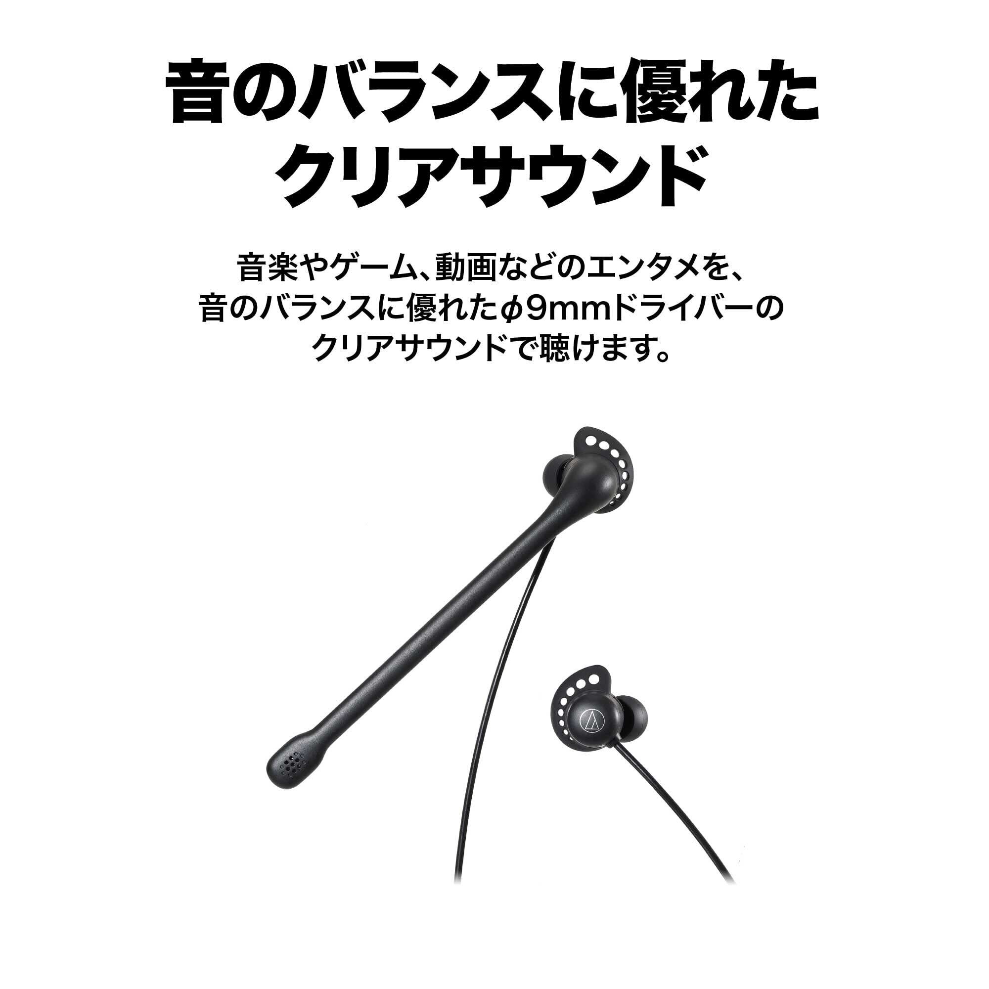 オーディオテクニカ ATH-202COM ヘッドセット 有線 ステレオ 3.5mm接続 ノイズキャンセリング マイク付き インナーイヤー イヤホン 軽量 手元コントローラー 抗菌・消臭加工 web会議 テレワーク windows mac Chrome