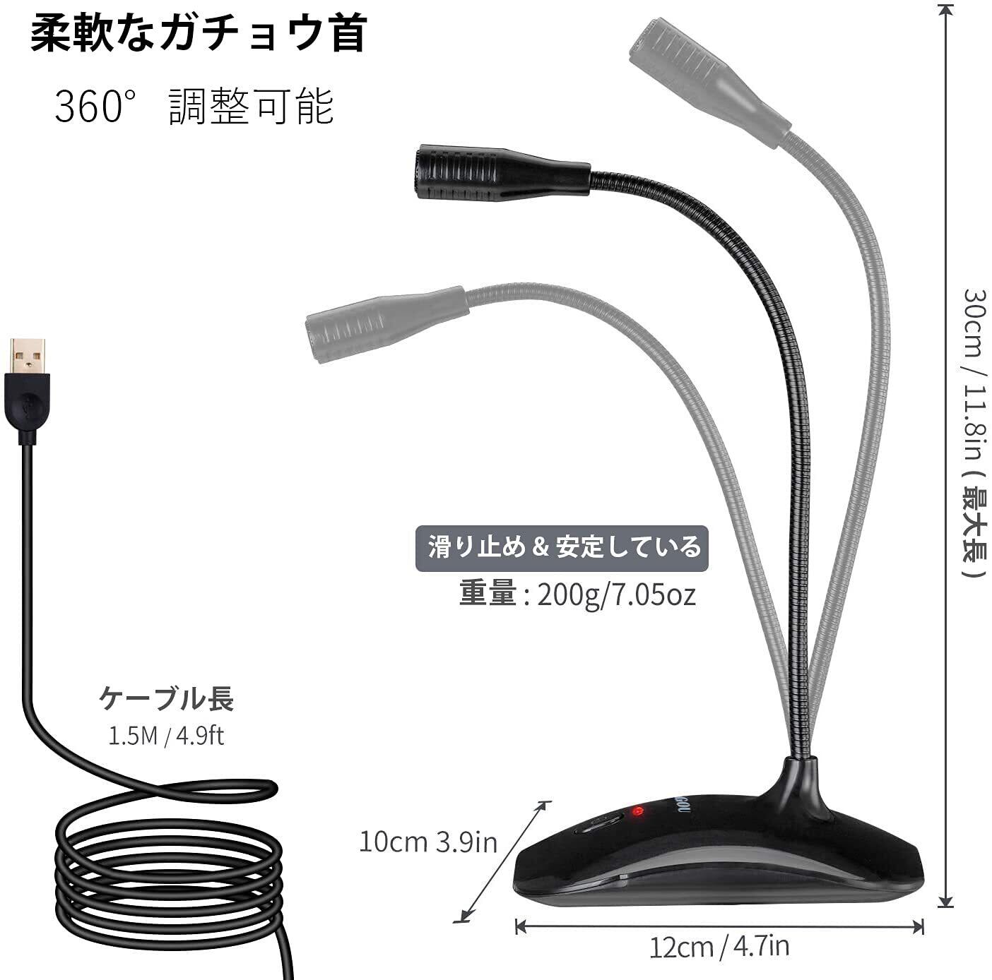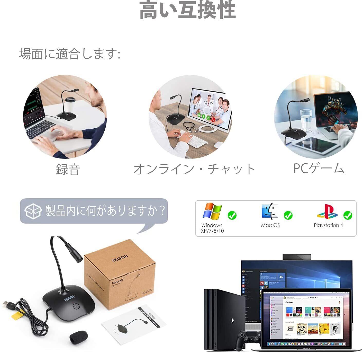 マイク USB TKGOU PC用 卓上 ミュート・ボタン 高感度全指向性360°集音 録音/宅録/在宅勤務 テレワーク/ゲーム実況/生放送などに適用 PC/Windows/Mac対応