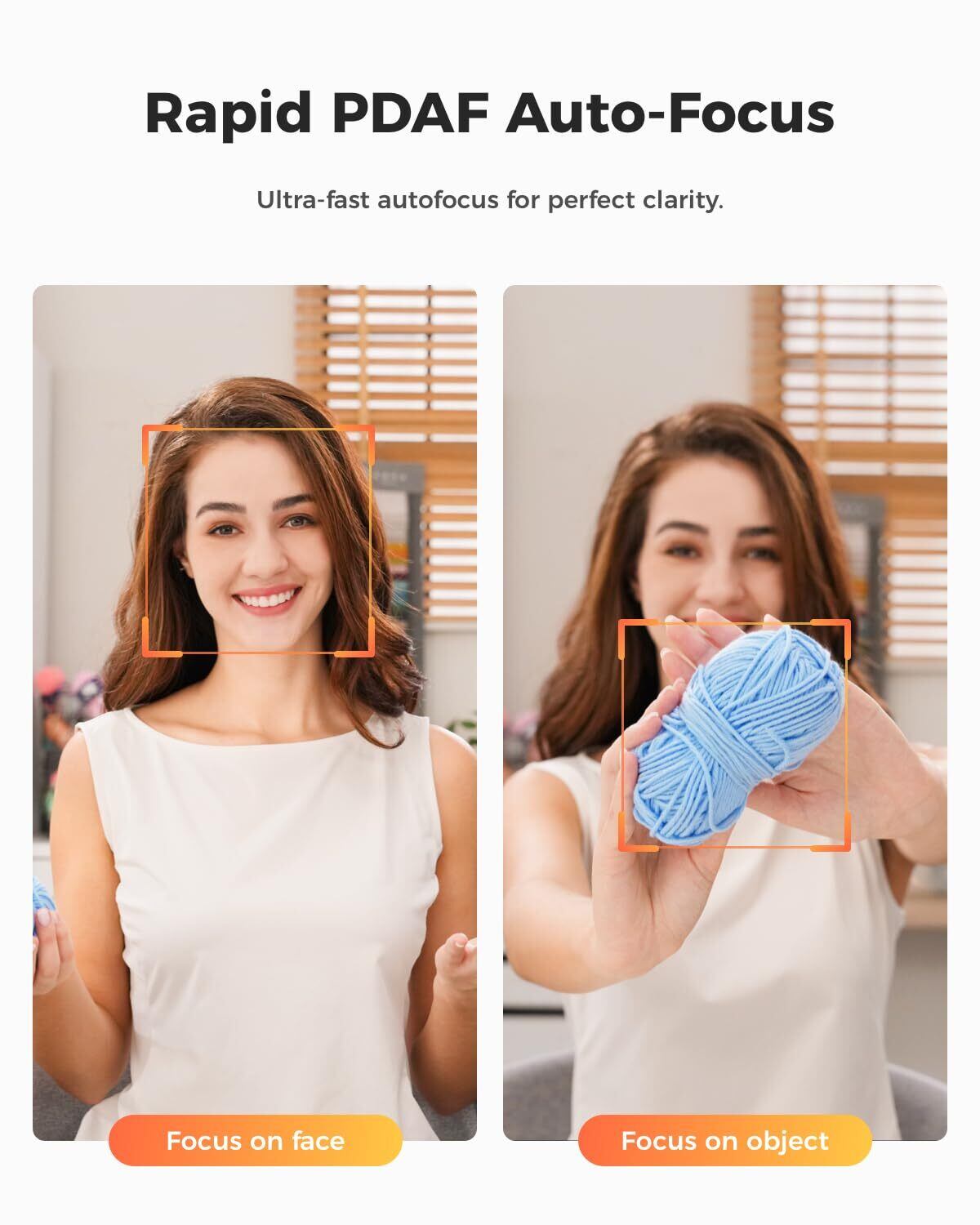 【卓越した4K画質】1/2 インチのCMOSセンサーを搭載し、48MP画素でUltra HD 4K解像度の滑らかかつ鮮明な画質でライブ配信を行います。明暗差画が大きい照明環境でもきれいな映像で配信できます。また、一眼レフで最もよく使われているPDAFという高速自動フォーカス技術を採用しており、素早くピントを合わせることができます。