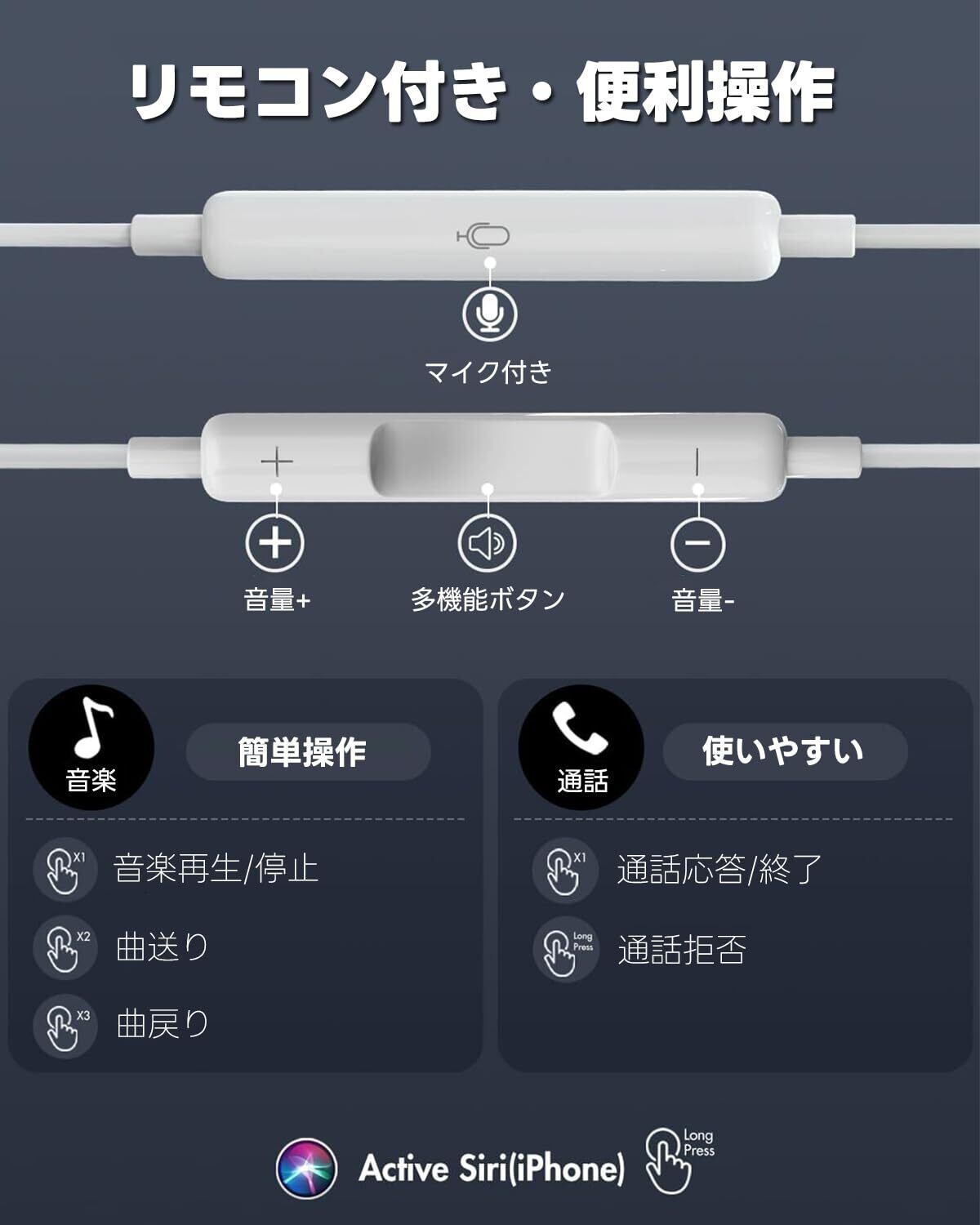 【リモコン付き・多機能】Cタイプ イヤホンは高感度で低ノイズ、クリアな通話音質を実現する高品質マイクを搭載しています。さらに、リモコン機能が付属しており、再生/一時停止/音量調整/通話操作/曲送りなど、すべての基本機能を片手で簡単に操作可能です。通勤、旅行、運動、出張など、さまざまなシーンで活躍します。