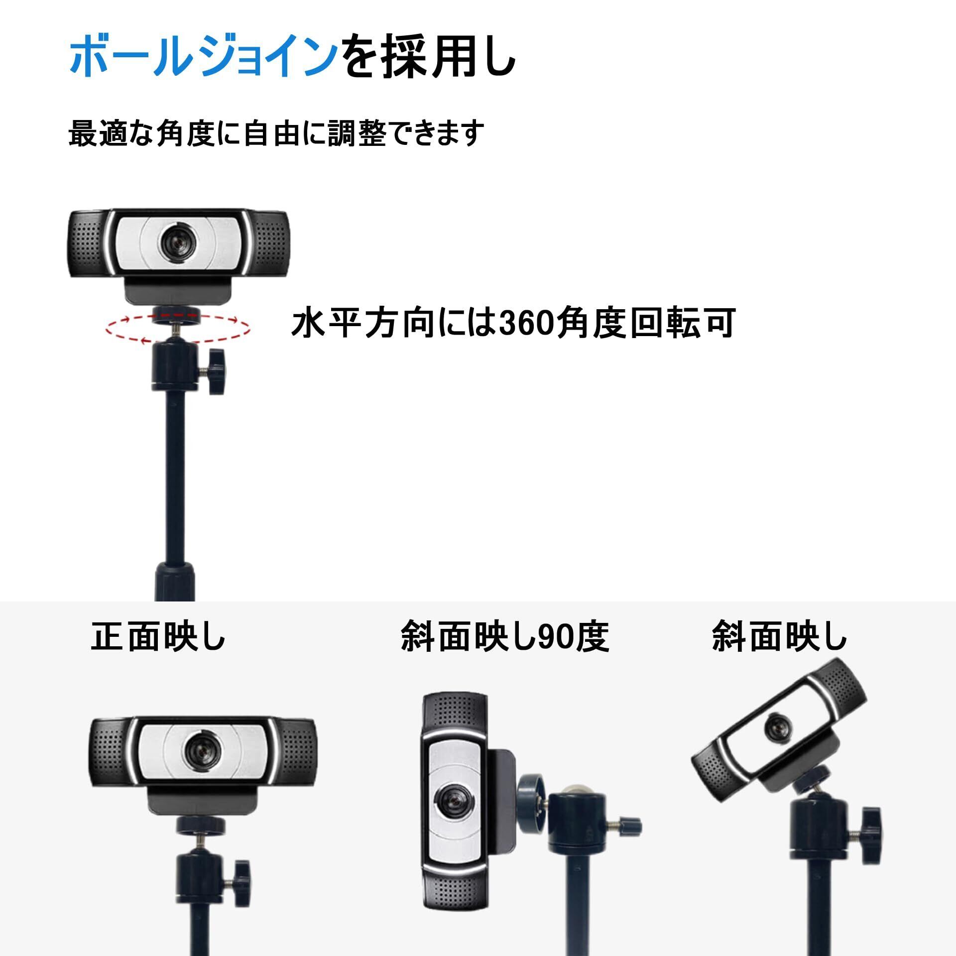 WEBカメラ卓上スタンド メタル雲台付き 1/4-20UNCインチネジ 角度・高さ調整可 メタル台座105mm (ブラック)