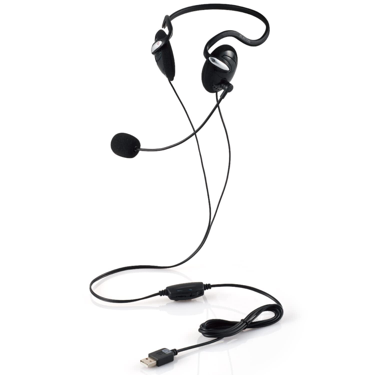 エレコム 有線ヘッドセット USB マイク付き ネックバンド ミュート機能 ボリューム調整 軽量 【テレワーク リモートワーク Web会議】 ブラック HS-NB03SUBK