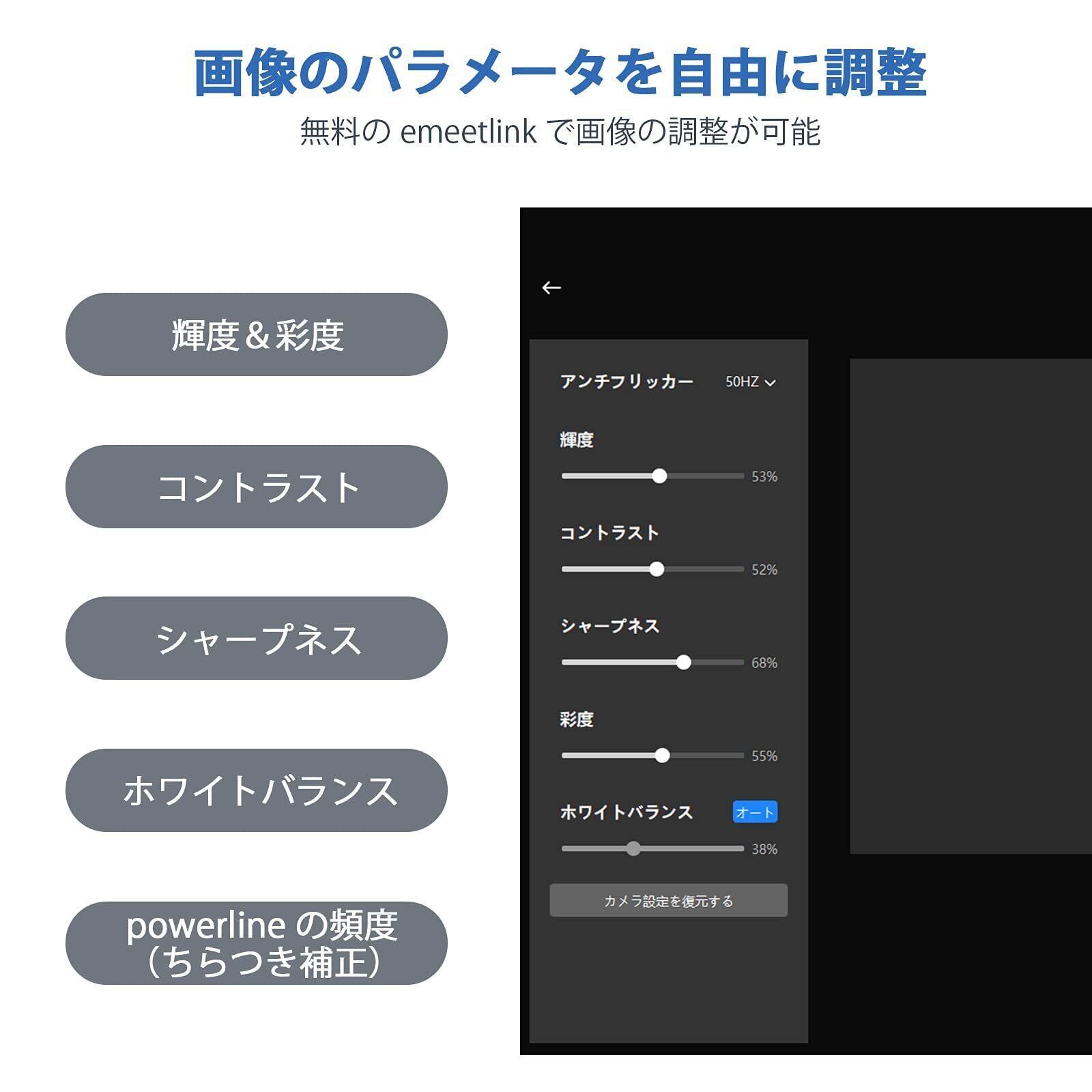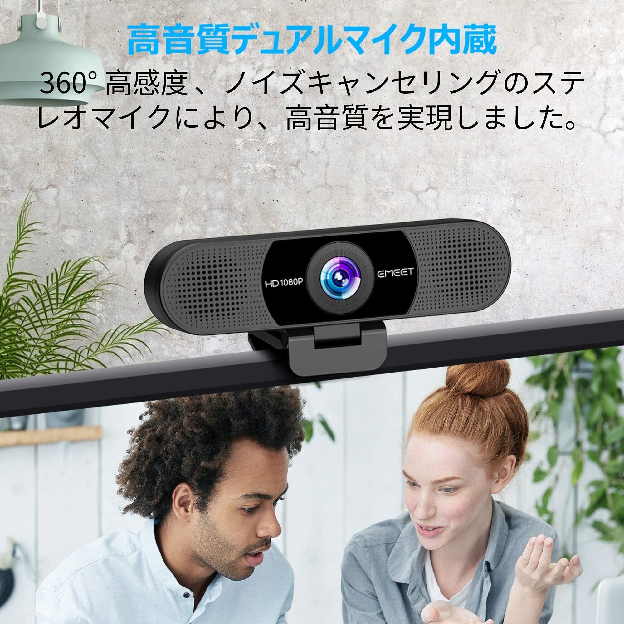 【360°集音・優れたオーディオ品質】全方向デュアルマイクが内蔵されwebカメラは、周りの声をしっかり拾いながら、ノイズも最小限に抑えられ、優れたオーディオを提供します。また、360°集音で、クリア且つ広りのある高音質を提供し、SkypeやZoomなどのWEB会議で大活躍します(ご注意:画面に波形・ちらつきなどが発生する場合、EMEETLINKというソフトウェアでアンチフリッカーを設置することで解決できます。