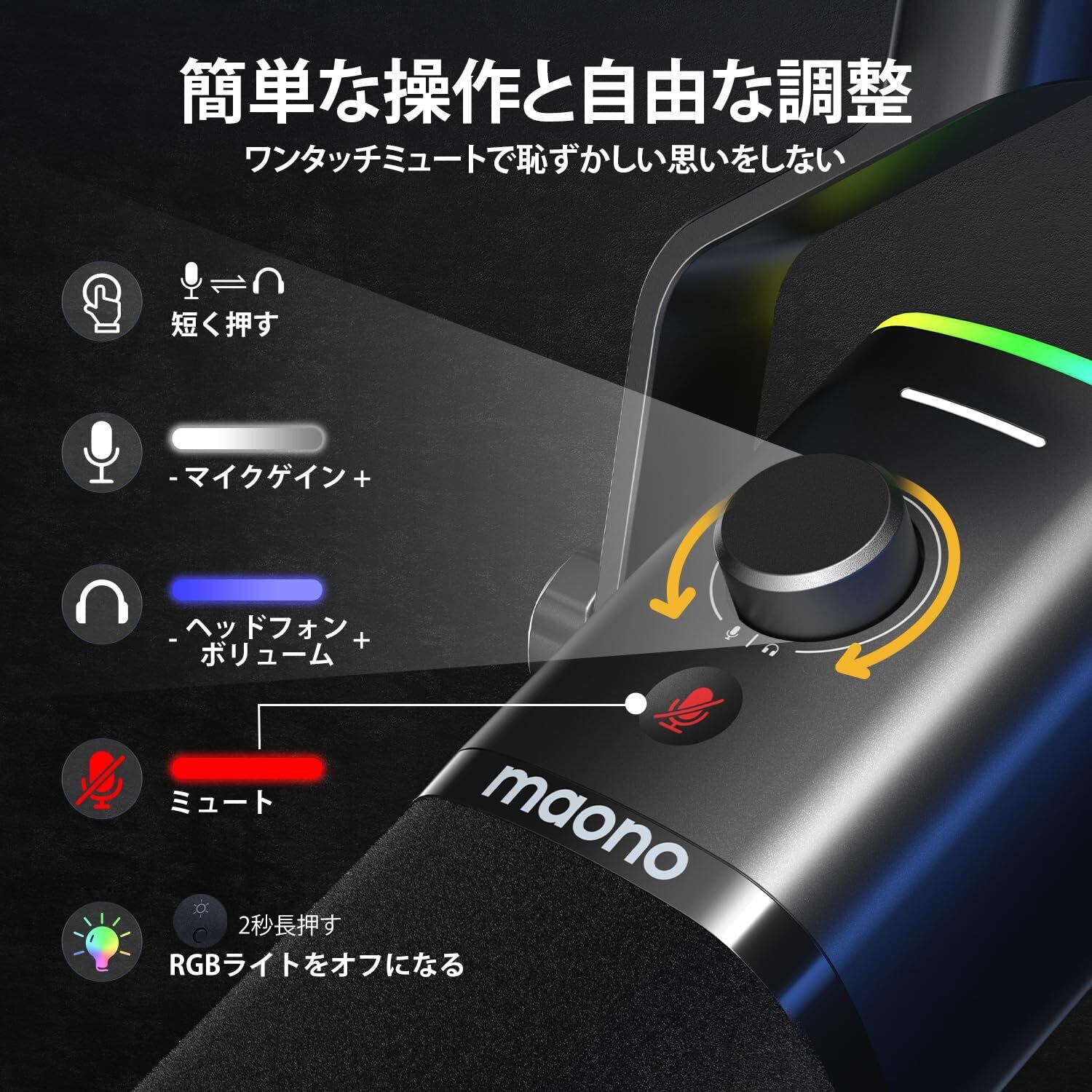 MAONO XLR/USB ゲーミングマイク ノイズキャンセリング PCマイクセット ポッドキャスト ストリーミング用 ダイナミックマイク ミュートボタン 単一指向性 YouTube 録音 ゲームチャット ライブ配信 ゲーム実況に PD100XS ブラック