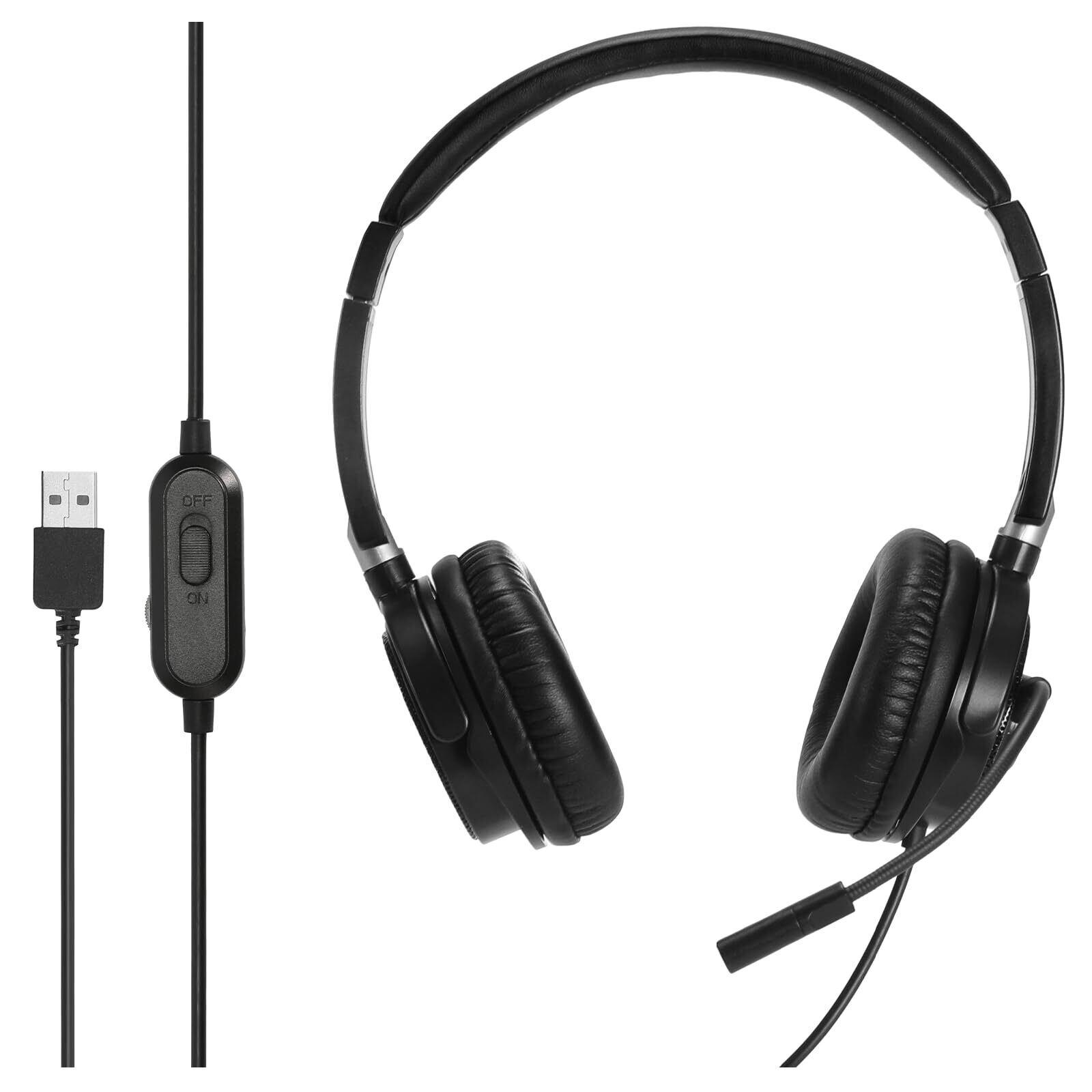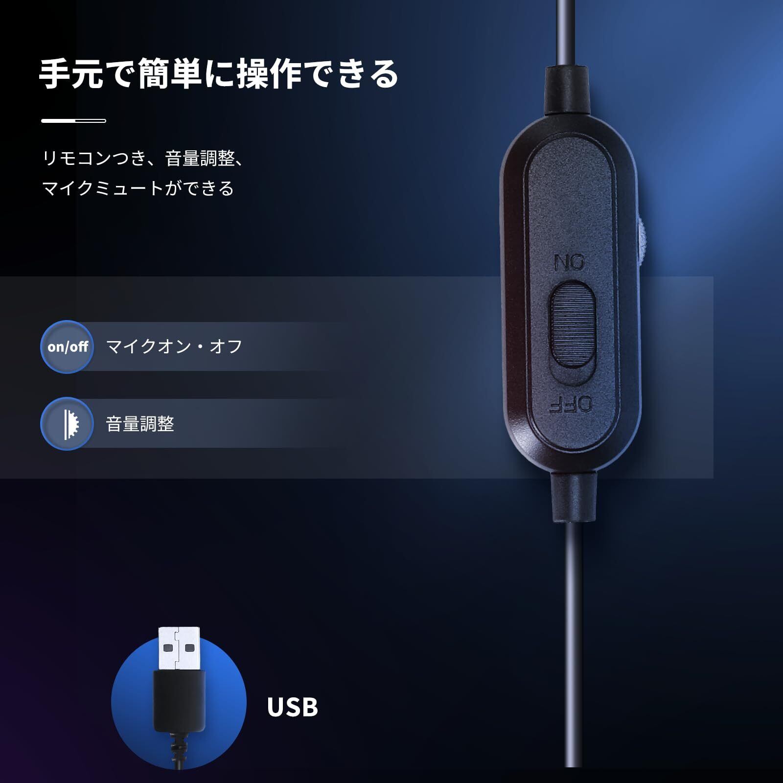 ヘッドセット ノイズキャンセリングマイク付き USB 有線 軽量 ヘッドホン ヘッドフォン 手元コントローラー 音量調節 マイクミュート 両耳 小型 長時間 ウェブ会議 テレワーク リモートワーク windows mac対応 ブラック