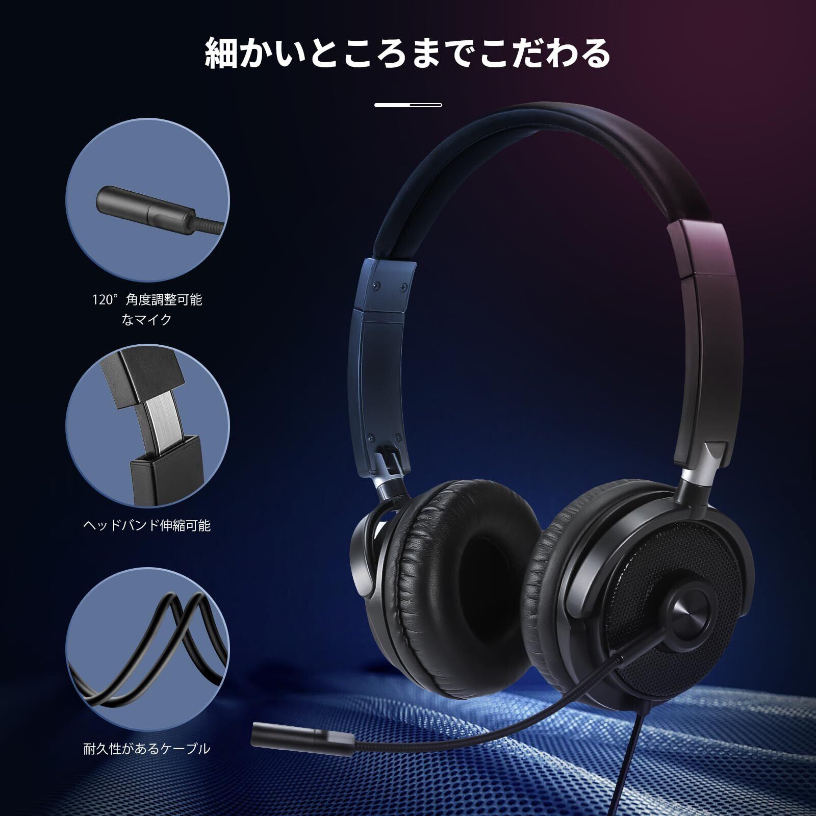 【ノイズキャンセリングを搭載した高品質マイク】 有線ヘッドセットはノイズキャンセリングマイク機能を搭載し、単一指向性マイクがクリアに音声を拾い、周囲の騒音を効果的に低減できます。遠隔会議やオンライン通話において、声をクリアに届け、プロフェッショナルなコミュニケーションを実現します。