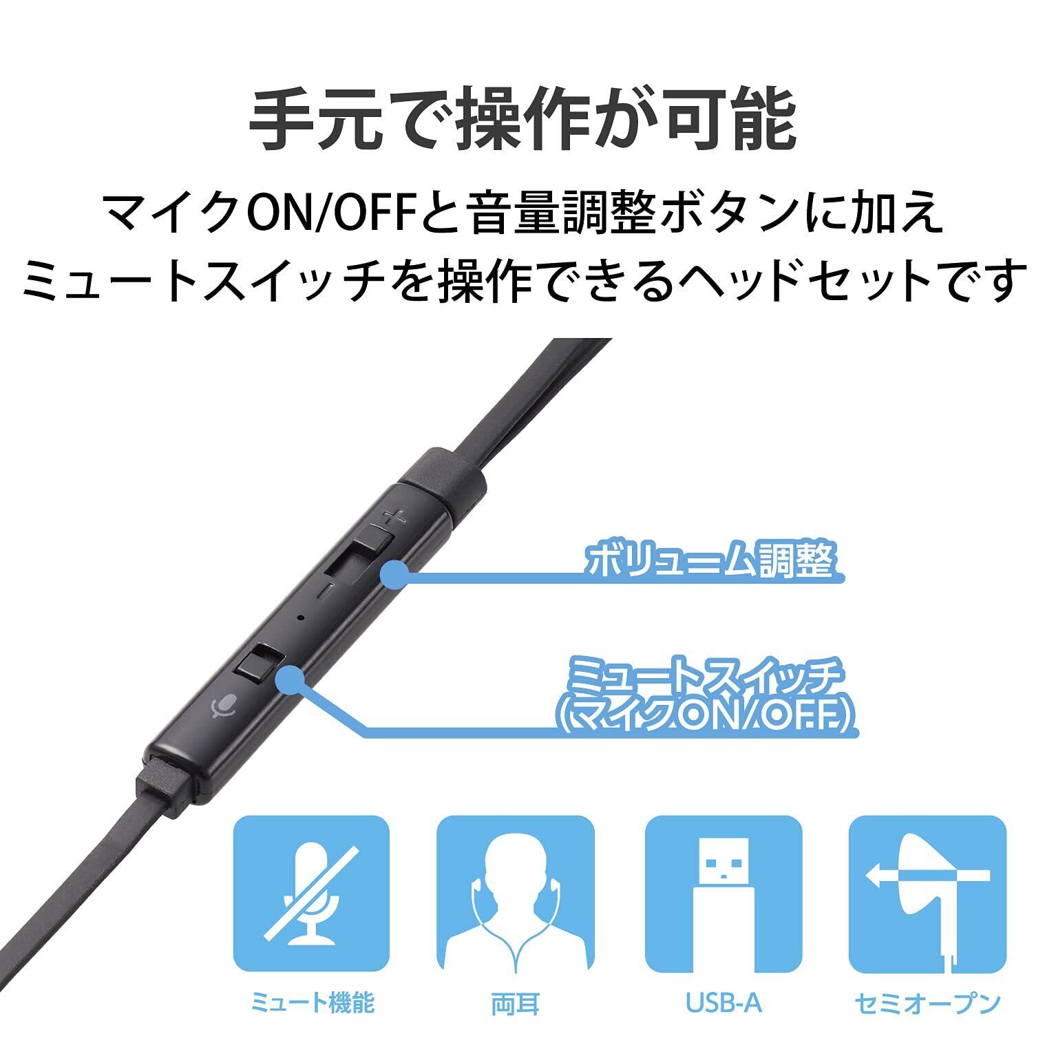 エレコム ヘッドセット 有線 イヤホンマイク USB接続 ステレオ ブラック HS-EP19UBK