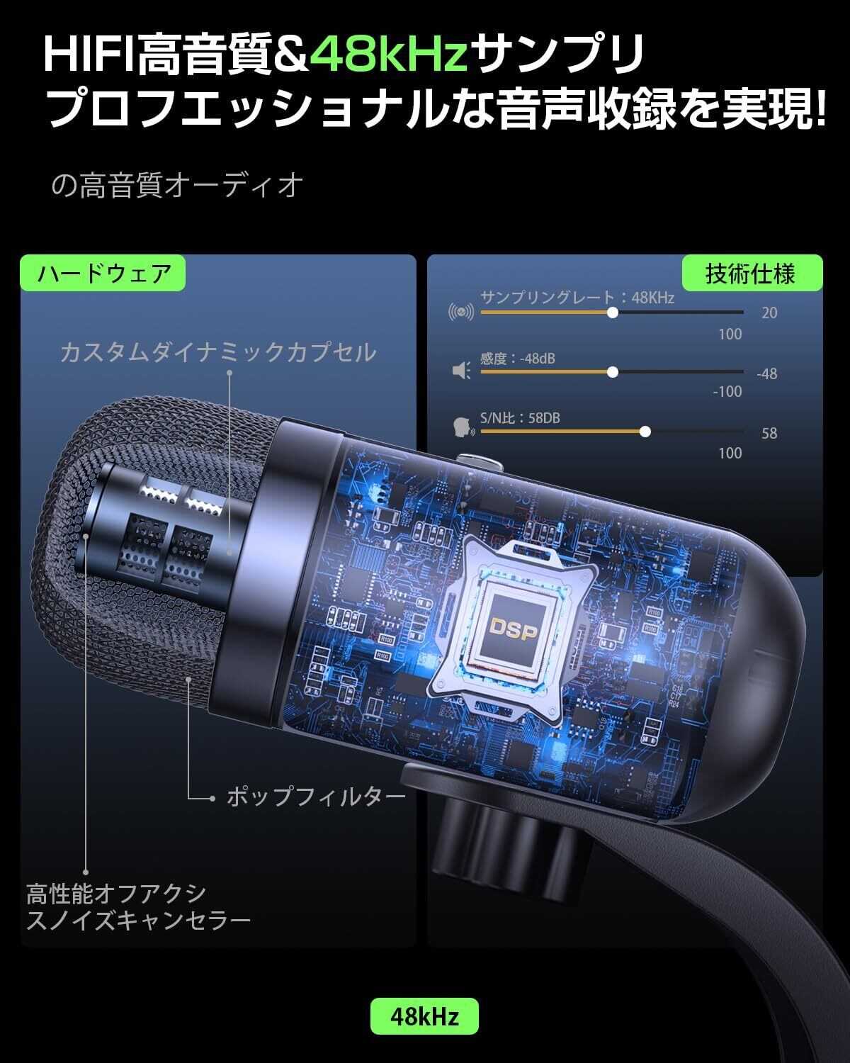 【安心】本マイクはご購入日より12ヶ月のが付いています。何か問題やご質問がございましたら、お気軽にアフターサービスまでご連絡ください。 パッケージ内容:スタンドアロンマイク*1、USBケーブル*1、タイプCアダプター*1、日本語取扱説明書*1。