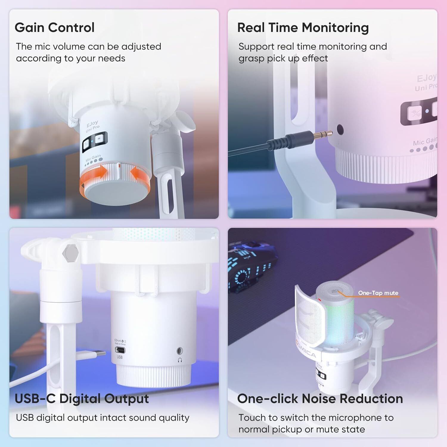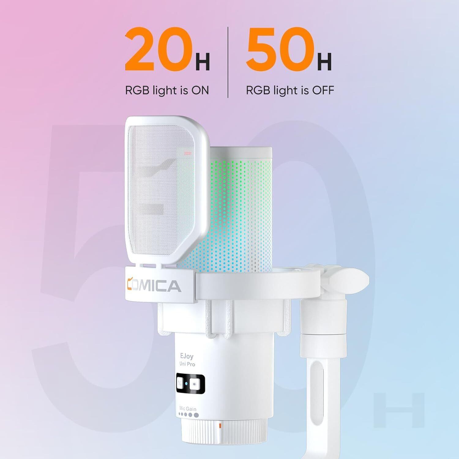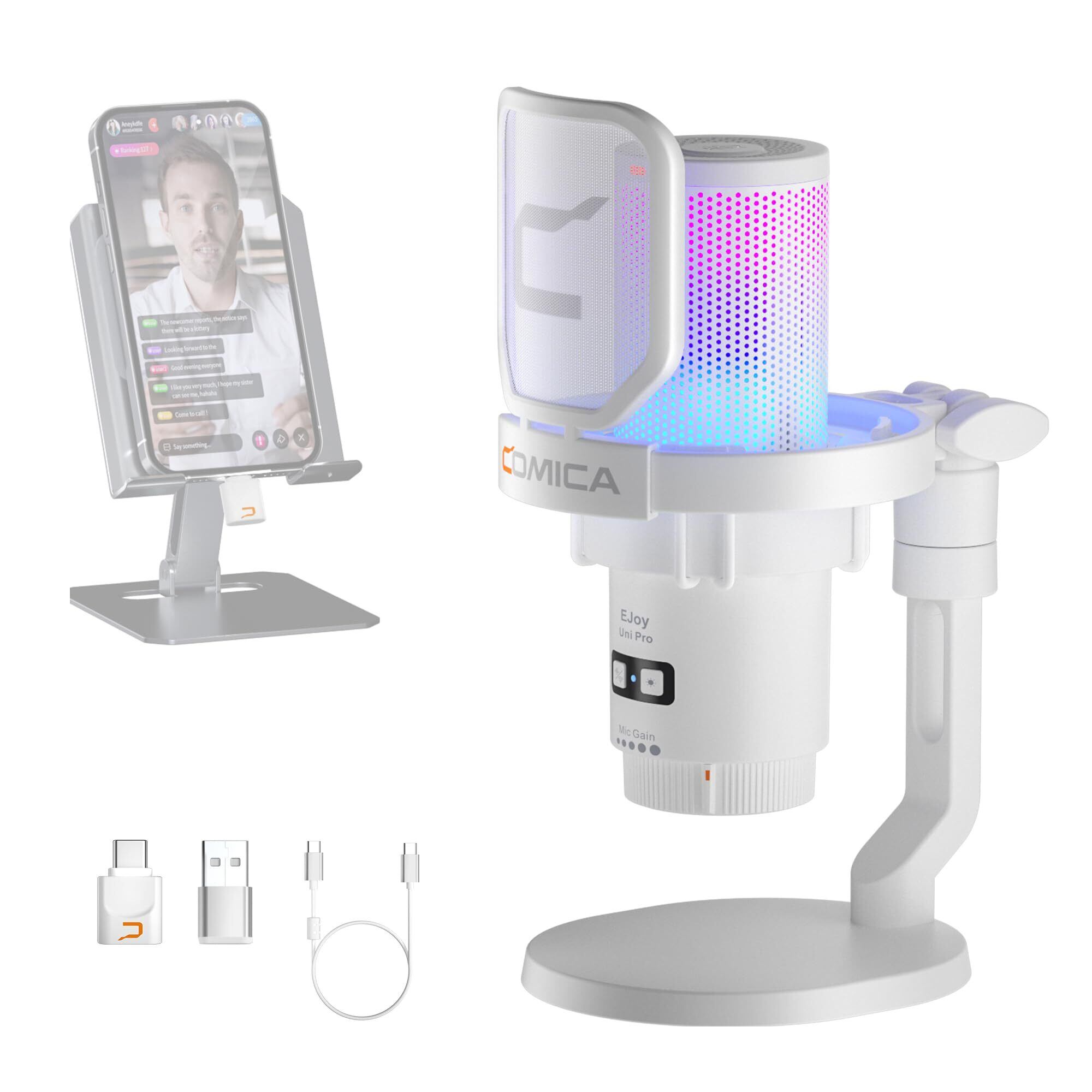 【COMICA 革新登場】ワイヤレスUSBコンデンサーマイク ゲーミングマイク 単一指向性 マイクセット RGBライティング ノイズ軽減 ワンタッチミュート web配信 テレワーク ポットキャスト コンテンツクリエーター ストリーミング Windows/Mac/PS4/PS5/iphone/iPad対応 EJoy Uni Pro(白)