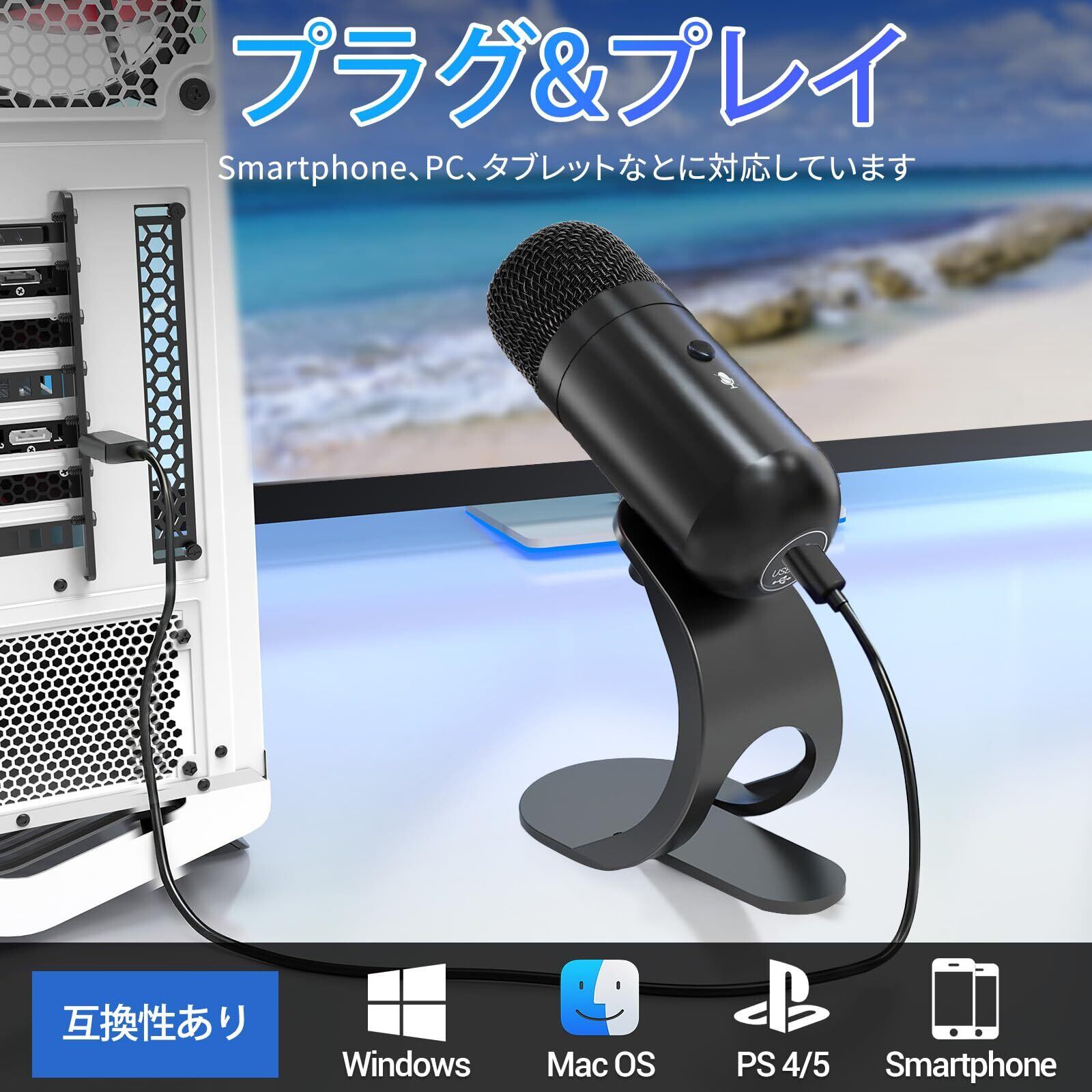 【USB即插即用&簡単で便利】このUSBマイクはプラグアンドプレイ設計を採用し、ドライバーや追加ソフトは不要。Bluetooth設定もいりません。USBポートに差し込むだけで、すぐに使用できます。Windows / Mac / ノートPC / デスクトップ / PS4 / PS5 / スマートフォンなど幅広いデバイスに対応。