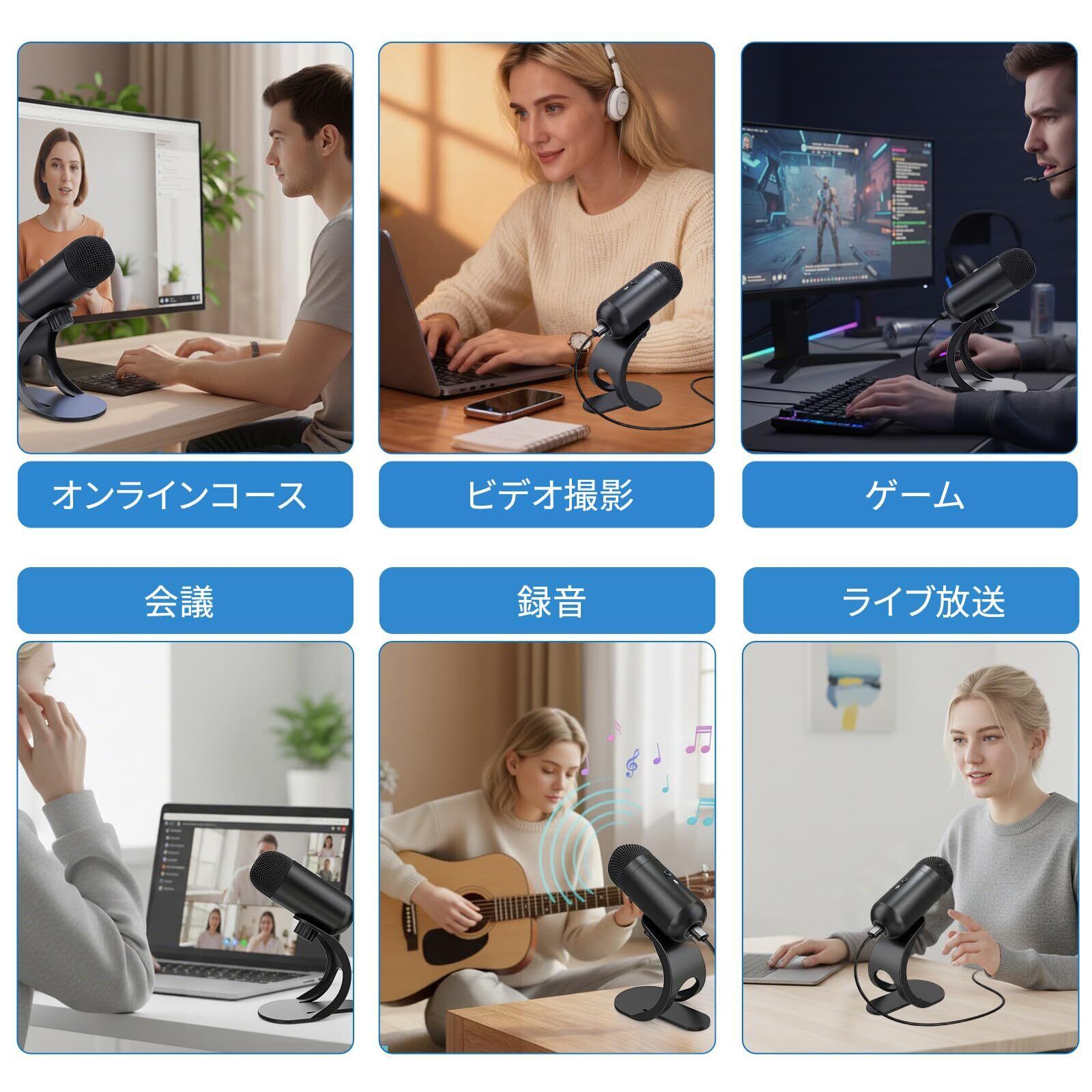 【多用途USBマイク&あらゆる場面に最適】この多機能PCマイクは、配信用、会議用、録音用、ゲーム実況用として幅広く活躍。ポッドキャスト、YouTube、Facebookライブ、音楽制作などにも対応し、初心者からプロまで満足できる録音体験を提供します。シンプルながら高音質・ノイズ低減設計で、どんな環境でもクリアな音声を届けます。