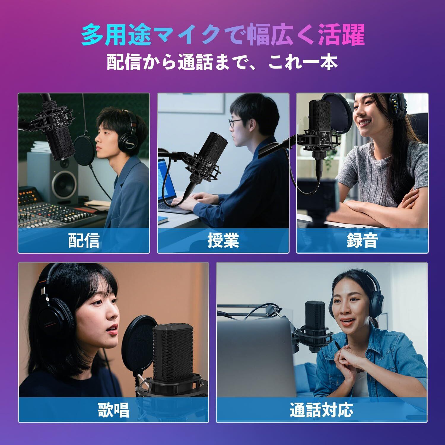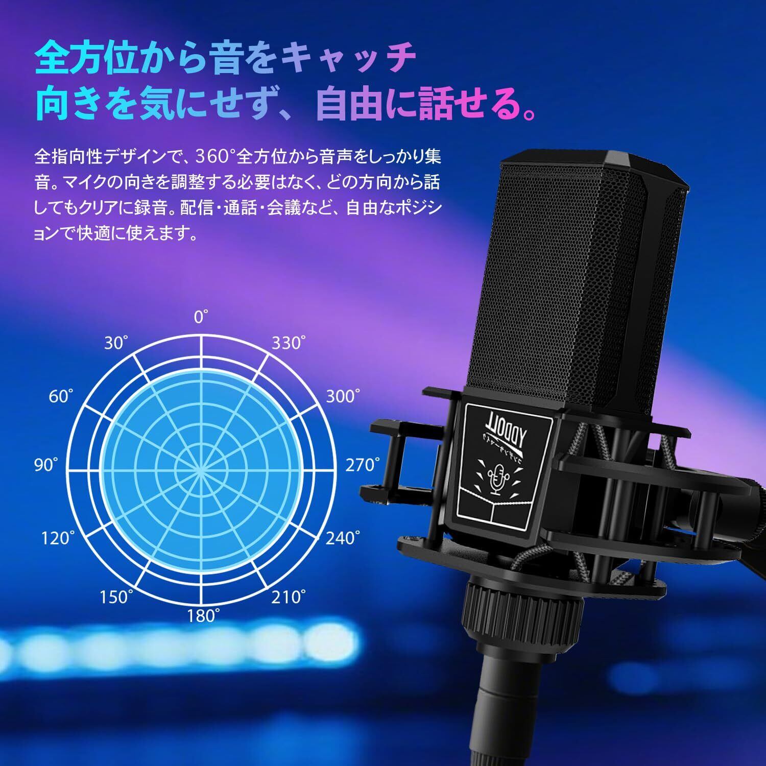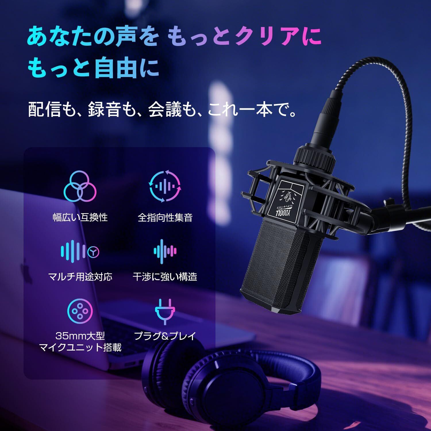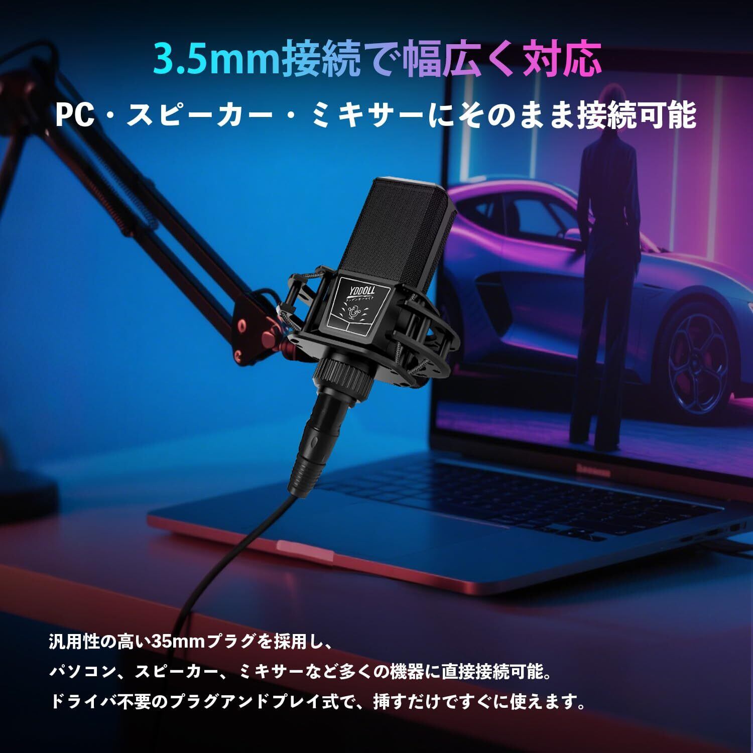コンデンサーマイク PC用マイク パソコンマイク microphone 全指向性 高感度 35mm大口径 録音 外部スピーカー出力 高密度メッシュ搭載 ノイズ抑制 軽量型 コンパクト テレワーク 会議用 配信用 ゲーム実況 カラオケ対応 耐震支架 2m接続コード 日本語取扱説明書