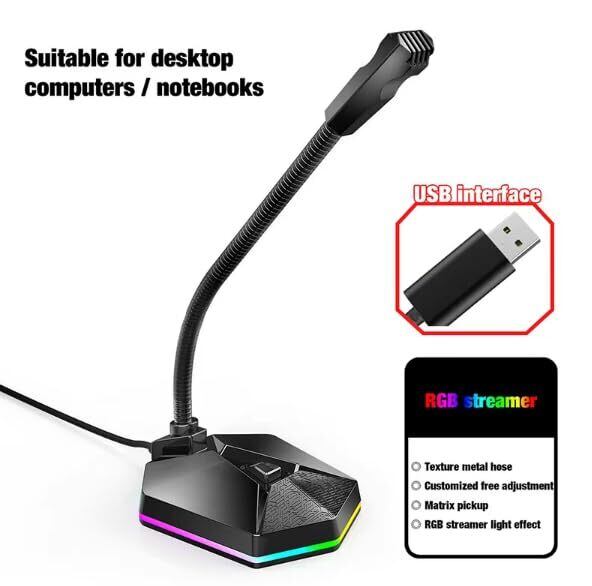 ゲーミングマイク PC用 USBマイク 卓上マイク 会議マイク デスクマイクusb rgbライトマイク コンピュータゲームmicデスクトップゲーム用pcのラップトップストリーミング 小型 Web会議 ボイスチャット 配信 Windows mac【国 (stix GM-99)