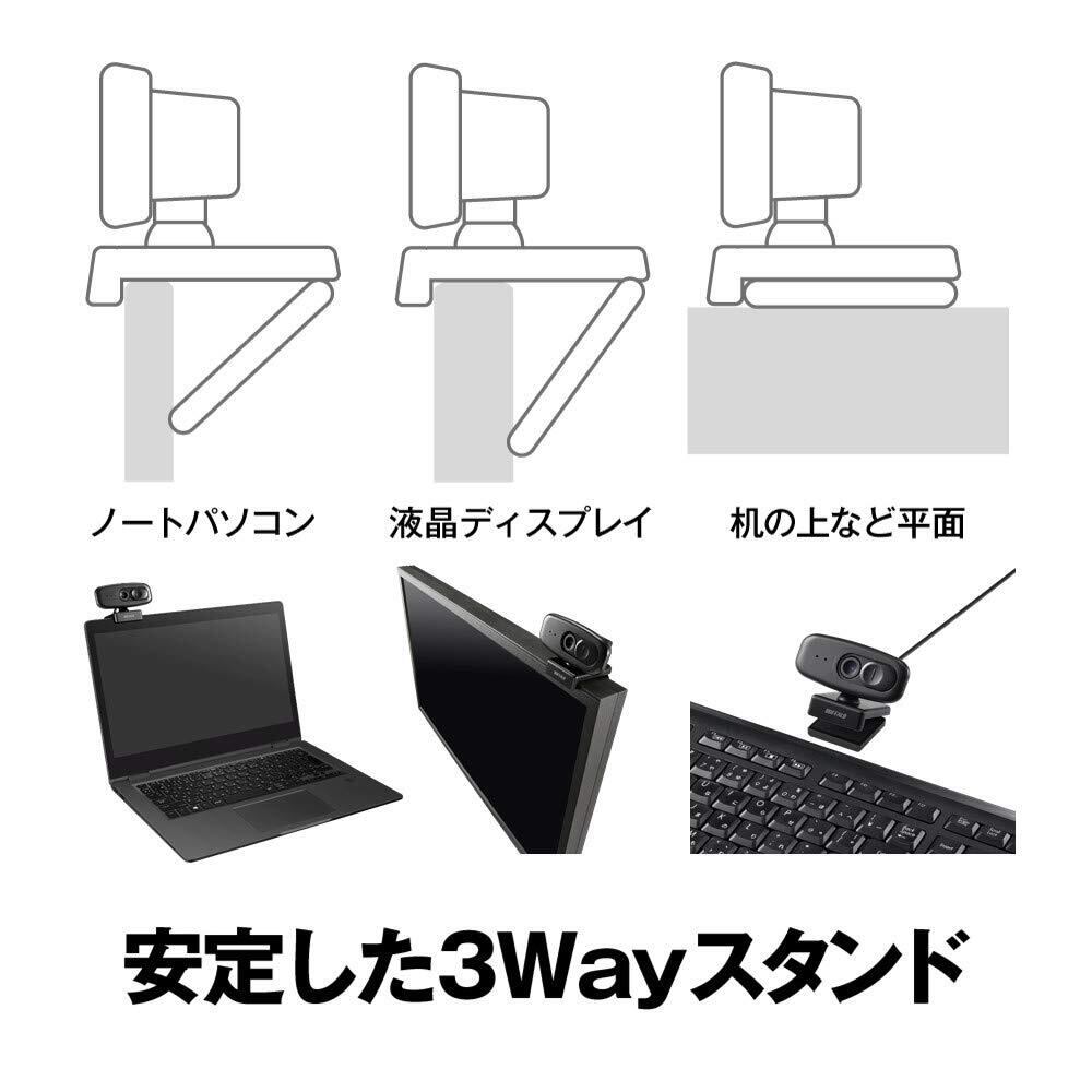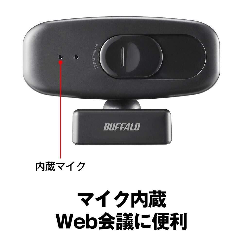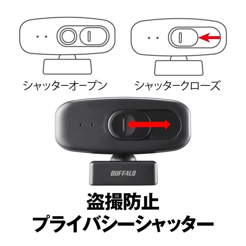 バッファロー WEB カメラ 1080P フルHD 30 fps 200 万画素 視野角 約81° Zoom/Slack/Microsoft Teams メーカー動作確認済 PC/Windows/Mac 対応 プライバシーシャッター付 マイク内蔵 小型 シンプル 日本メーカー ケーブル2m ブラック BSW305MBK