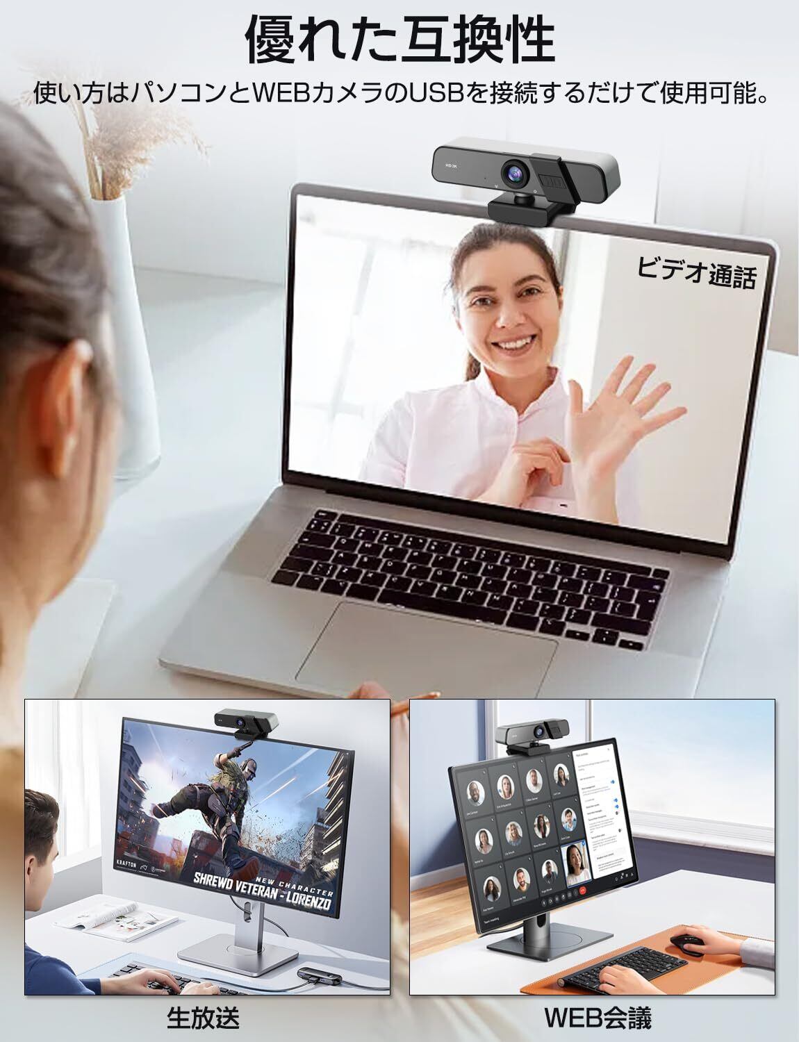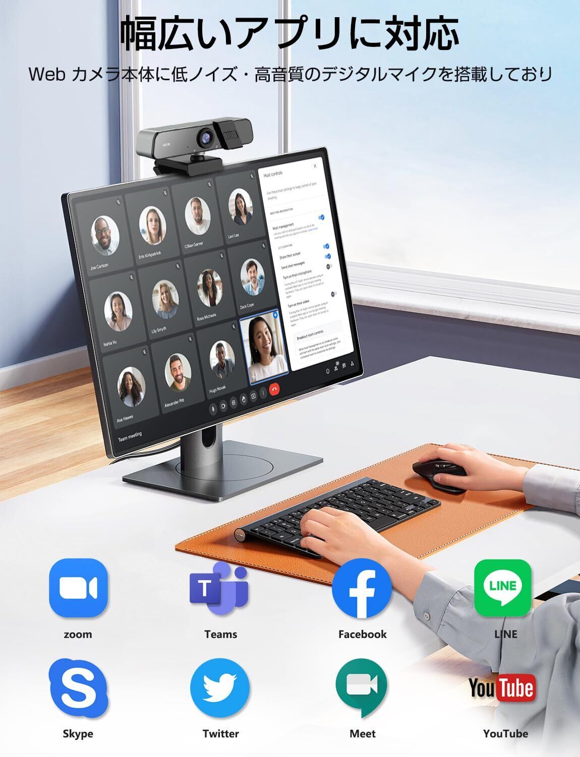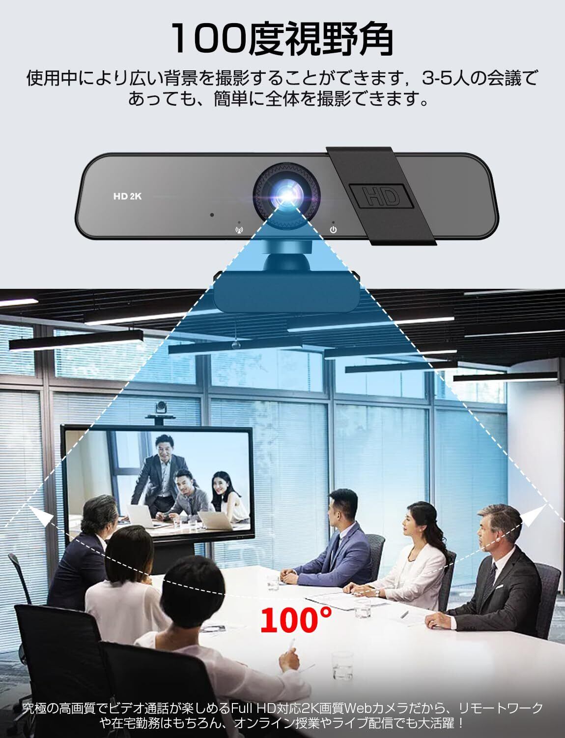 Aury webカメラ 2K ウェブカメラ 自動HD光補正機能を搭載 100°視野角 ノイズキャンセリングマイク付きpcカメラ&プレイ プライバシーカバー ビデオ会議/オンライン授業/ライブ配信用