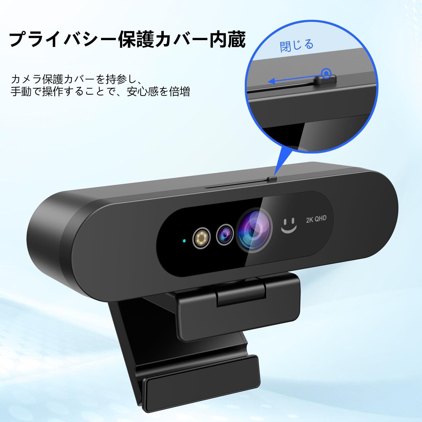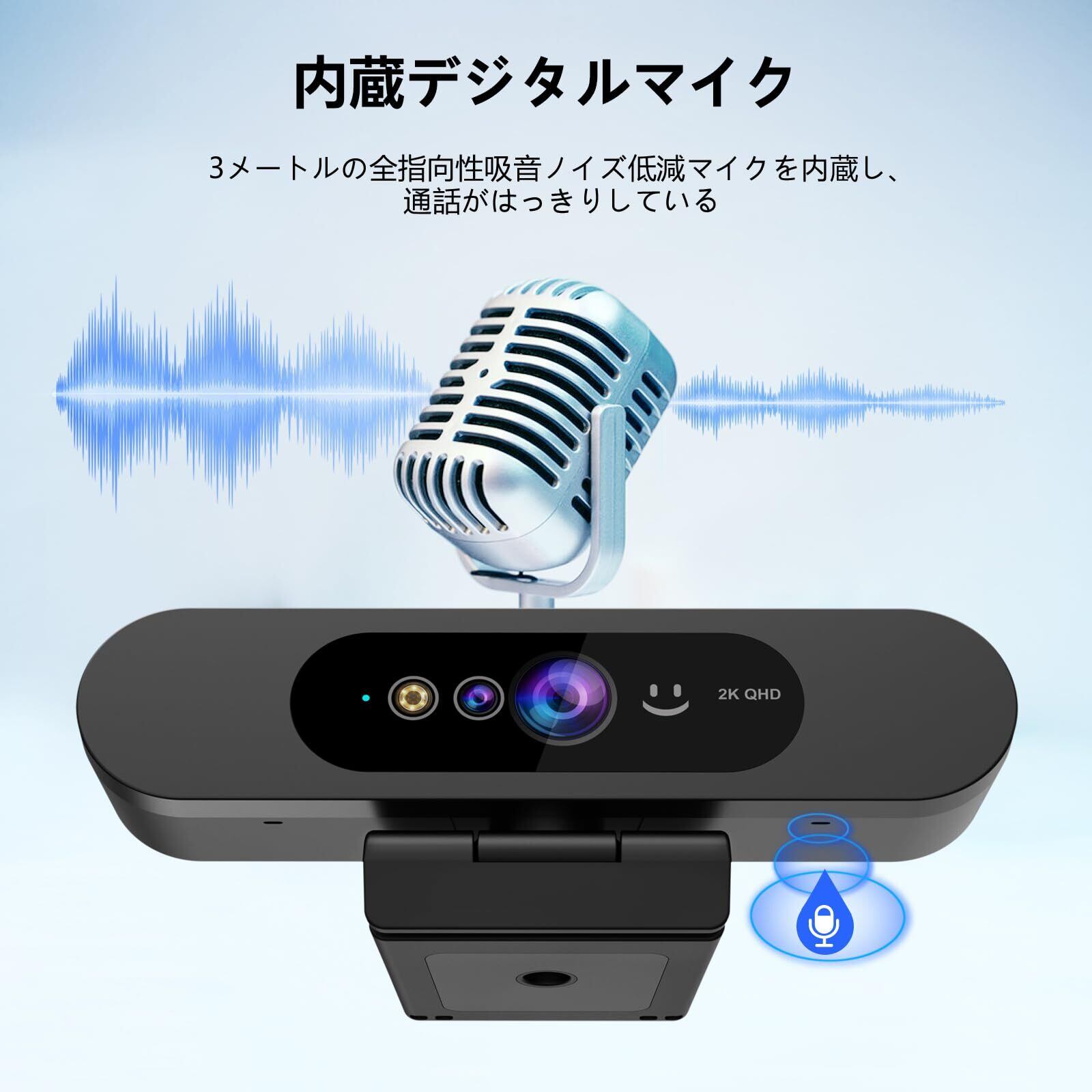 2K PCウェブカメラ、ノイズキャンセリングマイク付きWindows Hello顔認識ウェブカメラ、4MP、プライバシーカバー、92度の視野、プラグアンドプレイ、オフィス、会議、教室、ライブブロードキャストに最適、複数のWin、Linux、Mac、Androidと互換性あり