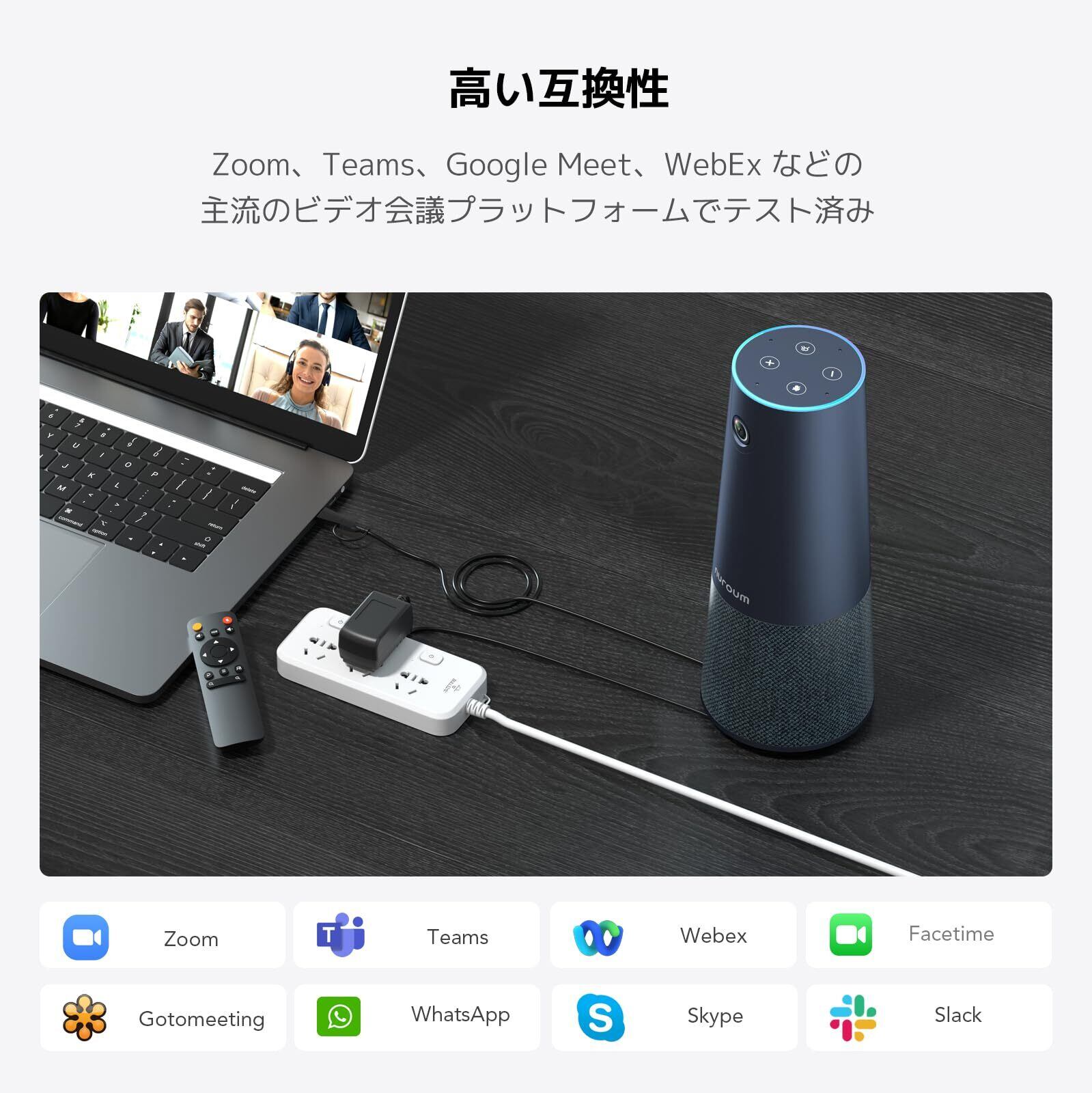 「AIが気配り音声最適化・高出力スピーカー搭載」複数の参加者の会議なら、声をはっきり聞こえるのが大事なんでしょう!360度満遍なく、集音範囲をさらに広大させて半径5メートルまで音声をしっかり拾うことができるため、最大20人の参加者を同時にホストすることができます。電源アダプターも付属しているので、USB単独で使用するよりもパワフルでスピーカーもより高い出力できます。AIの取得済みオーディオアルゴリズムと4つの内臓マイクにより、スマートにノイズキャンセリングできるのです。エコーキャンセラーが搭載され、最適化された二重双方向通信により、参加者の声が驚異的な明瞭さで聞き取りやすいです。