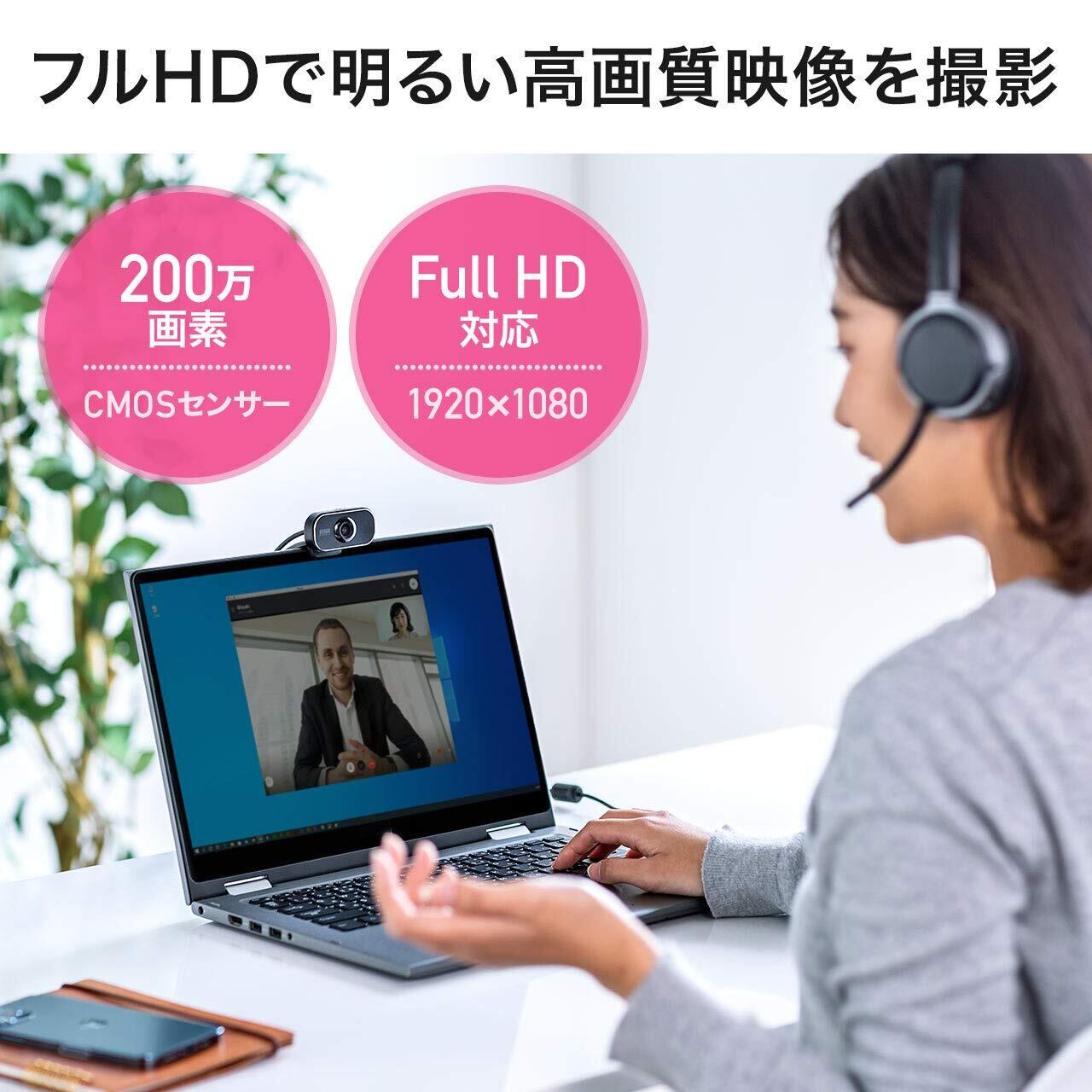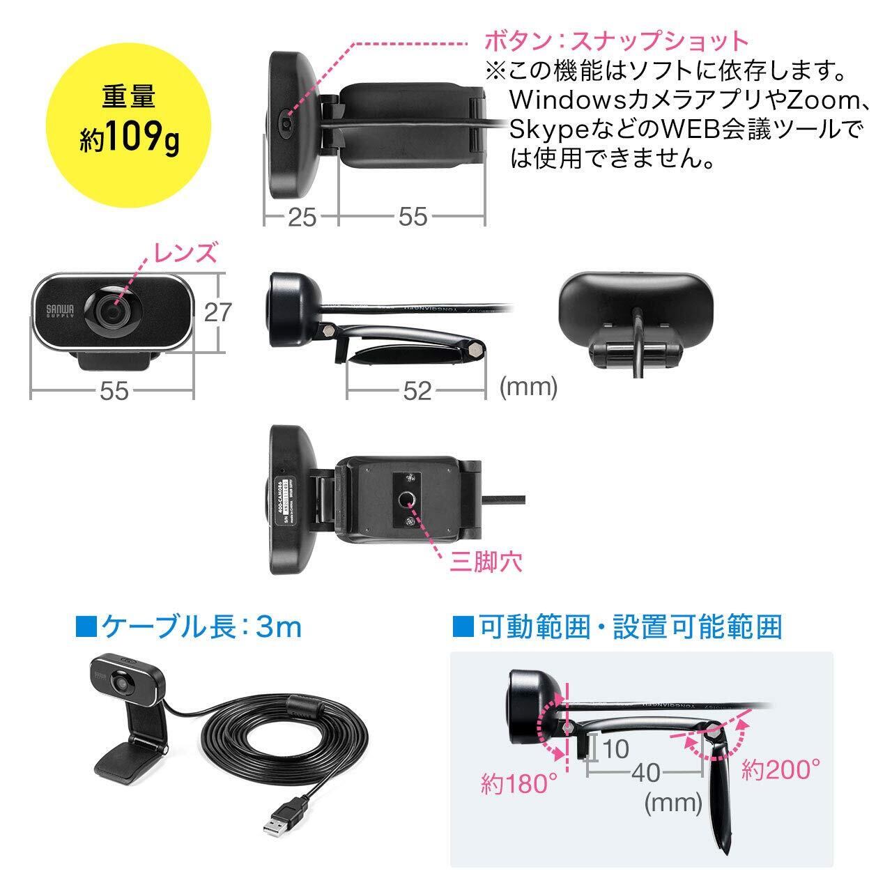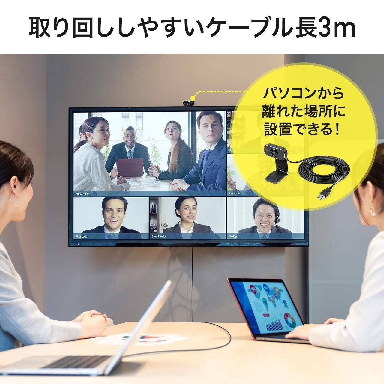 サンワダイレクト WEBカメラ マイクなし 画角60度 フルHD 1080P 200万画素 三脚対応 Zoom/Teams対応 ケーブル3m 1個 400-CAM086