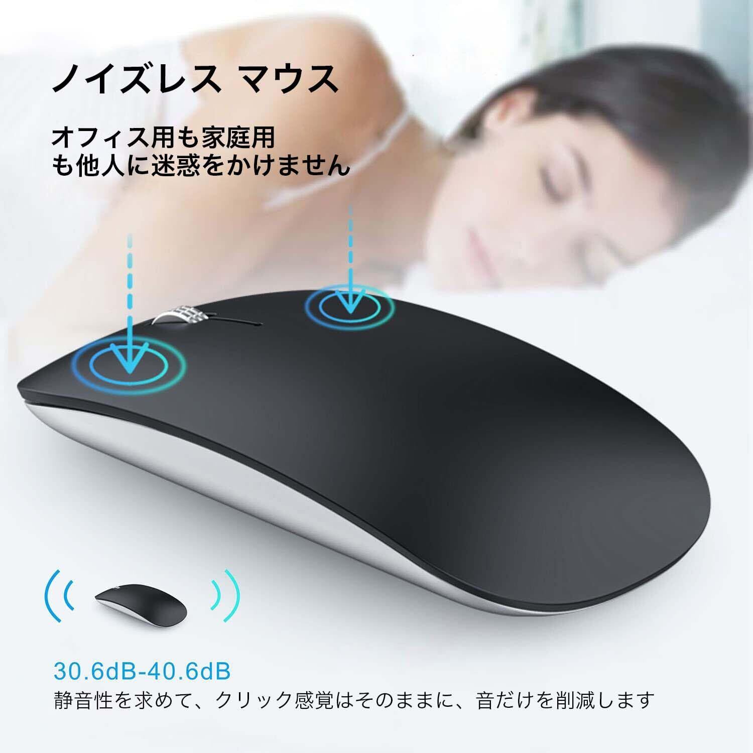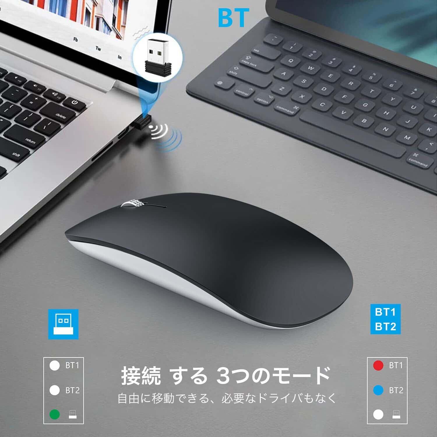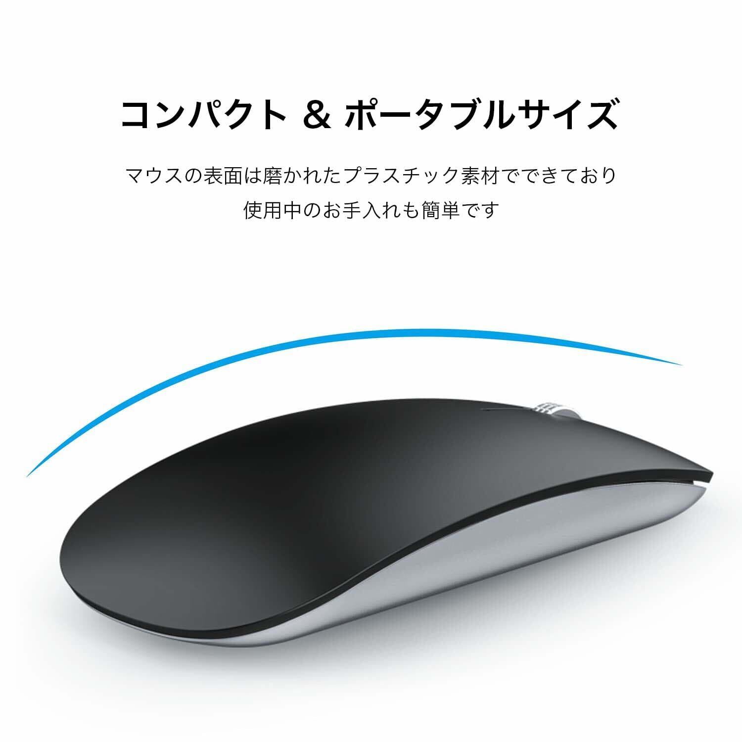 ワイヤレスマウス Bluetooth Mouse 静音マウス 薄型2.3cm 指紋防止 ミニマリズム 充電式 省エネルギー Windows/Mac/Android/Surface/iPad OS/ブルートゥース 対応 TELEC認証取得済み 日本語取扱説明書 艶消し黒