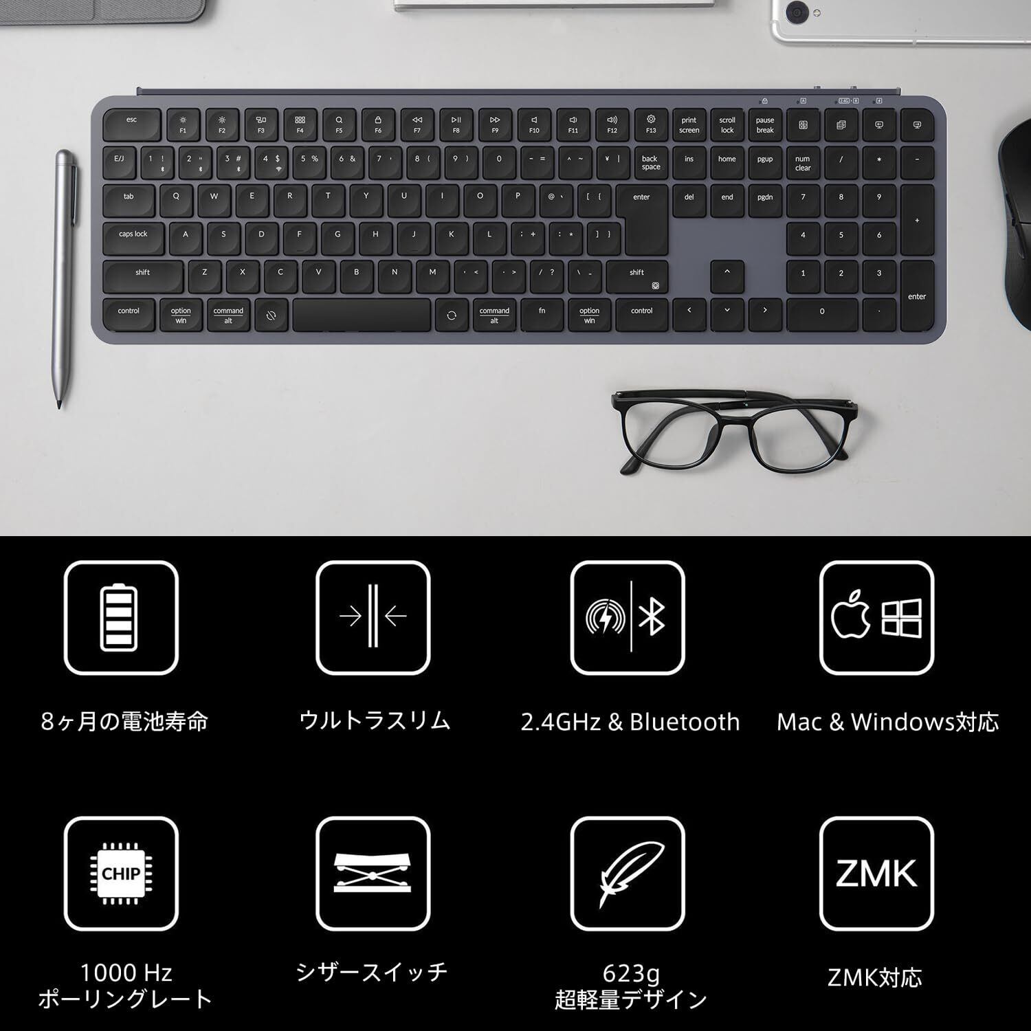 特徴 ZMKカスタマイズ機能付き
