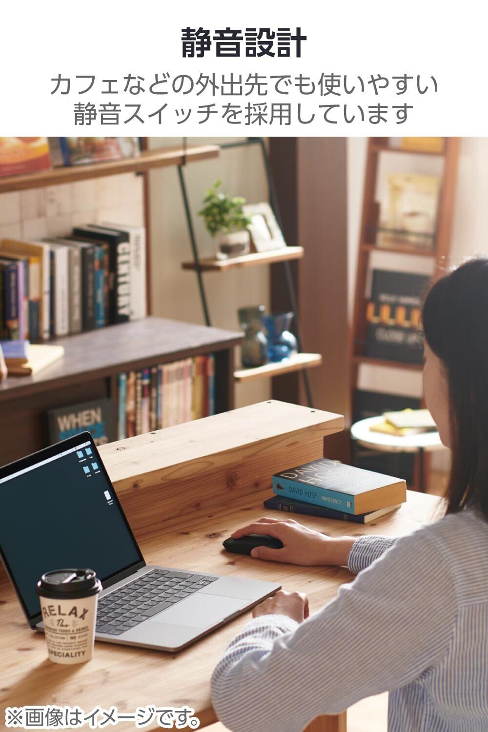 左右ボタンとホイールボタンに加え、「進む」、「戻る」を含めた5ボタンに静音スイッチを採用し、クリックのカチカチ音が気にならず、静かに使用できる静音マウスです。