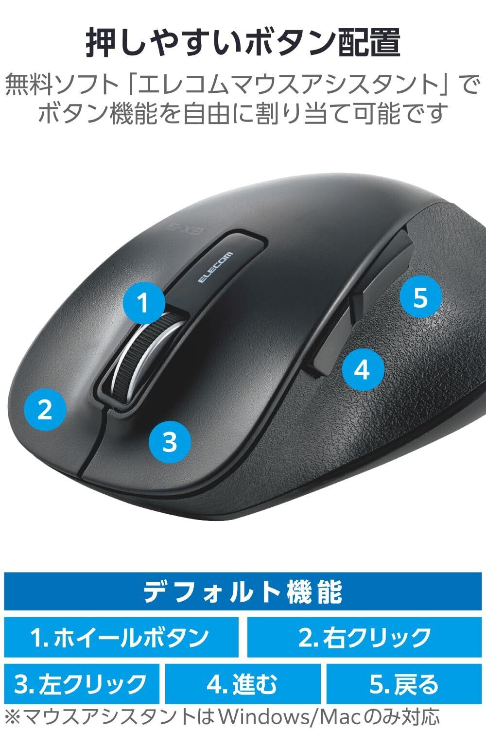エレコム マウス ワイヤレス (レシーバー付属) Lサイズ 5ボタン (戻る・進むボタン搭載) 静音 BlueLED 握りの極み ブラック M-XGL10DBSBK