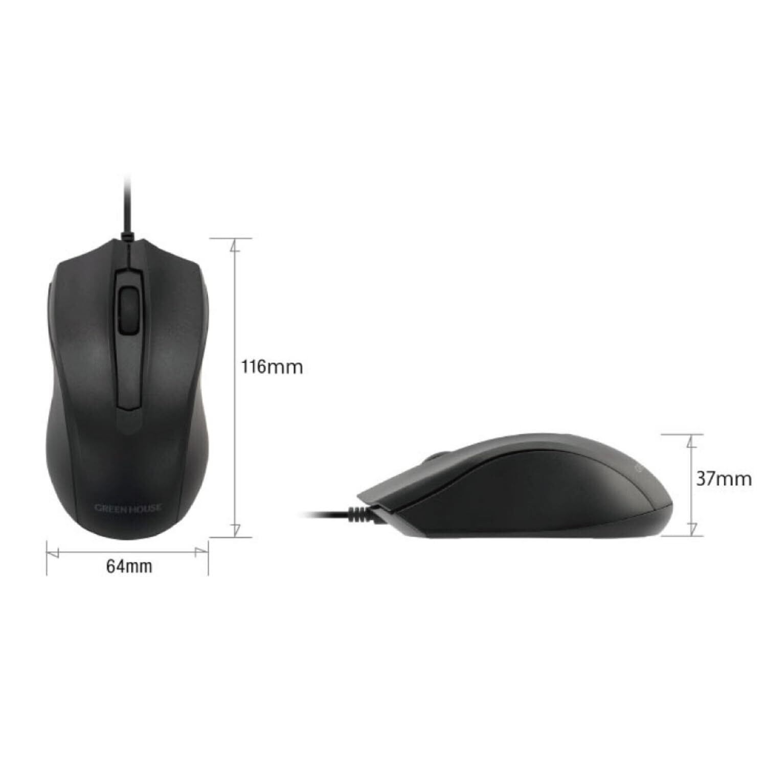 グリーンハウス 有線マウス クリック音が気にならない静音ボタン採用 GH-EMUDQOA-BK