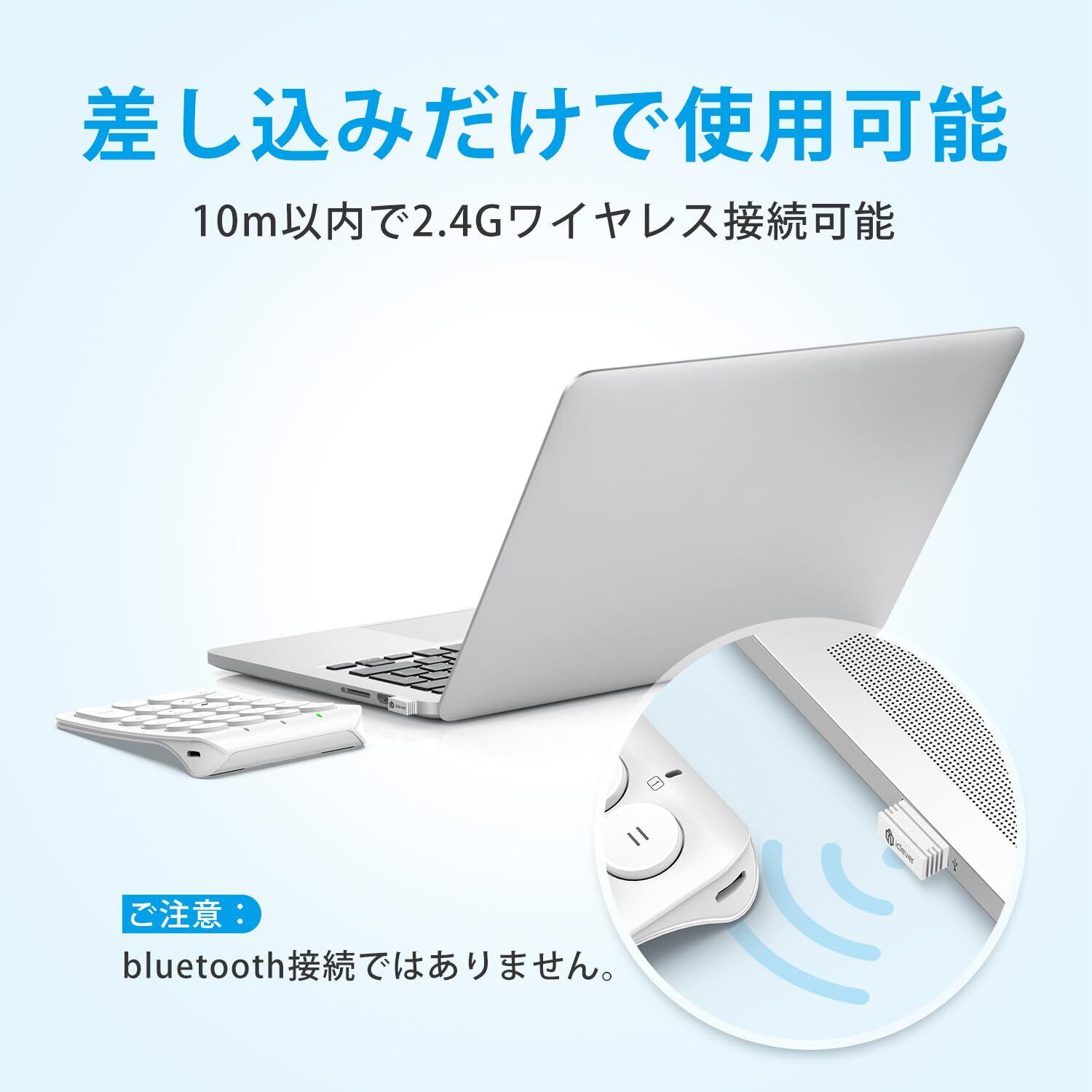 iClever テンキー ワイヤレス 2.4G 数字 キーボード パンタグラフ式 Type-C充電 超薄型 Tabキー付き 持ち運び便利 無線 ナンバーパッド 片手デバイス 高耐久 PC ノートブック用 Windows対応 IC-KP09 (ホワイト)