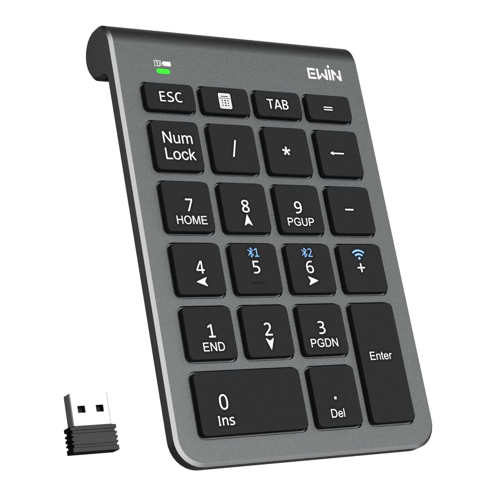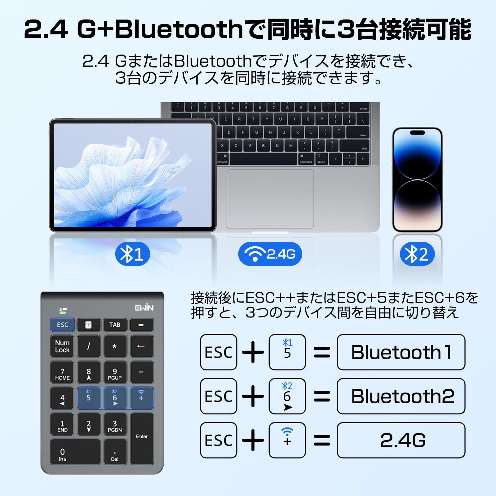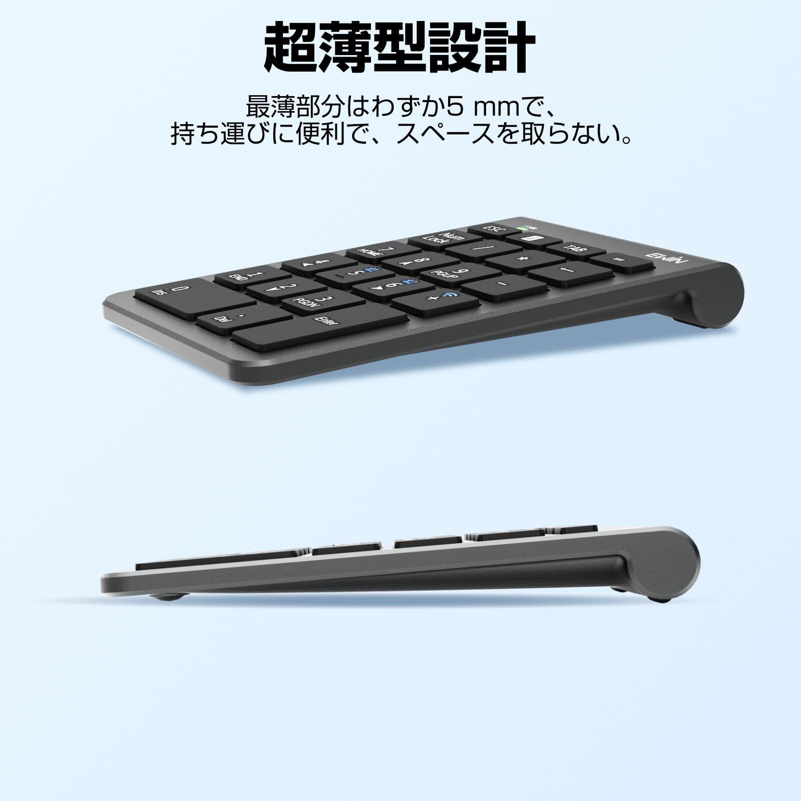Ewin テンキー numlock非連動 Bluetooth/2.4G接続 3台デバイス接続 ワイヤレス 数字キーボード Bluetoothキーボード 超薄型 左手デバイス 片手デバイス ショートカットキー 日本語対応 iOS iPadOS Windows Androidに対応