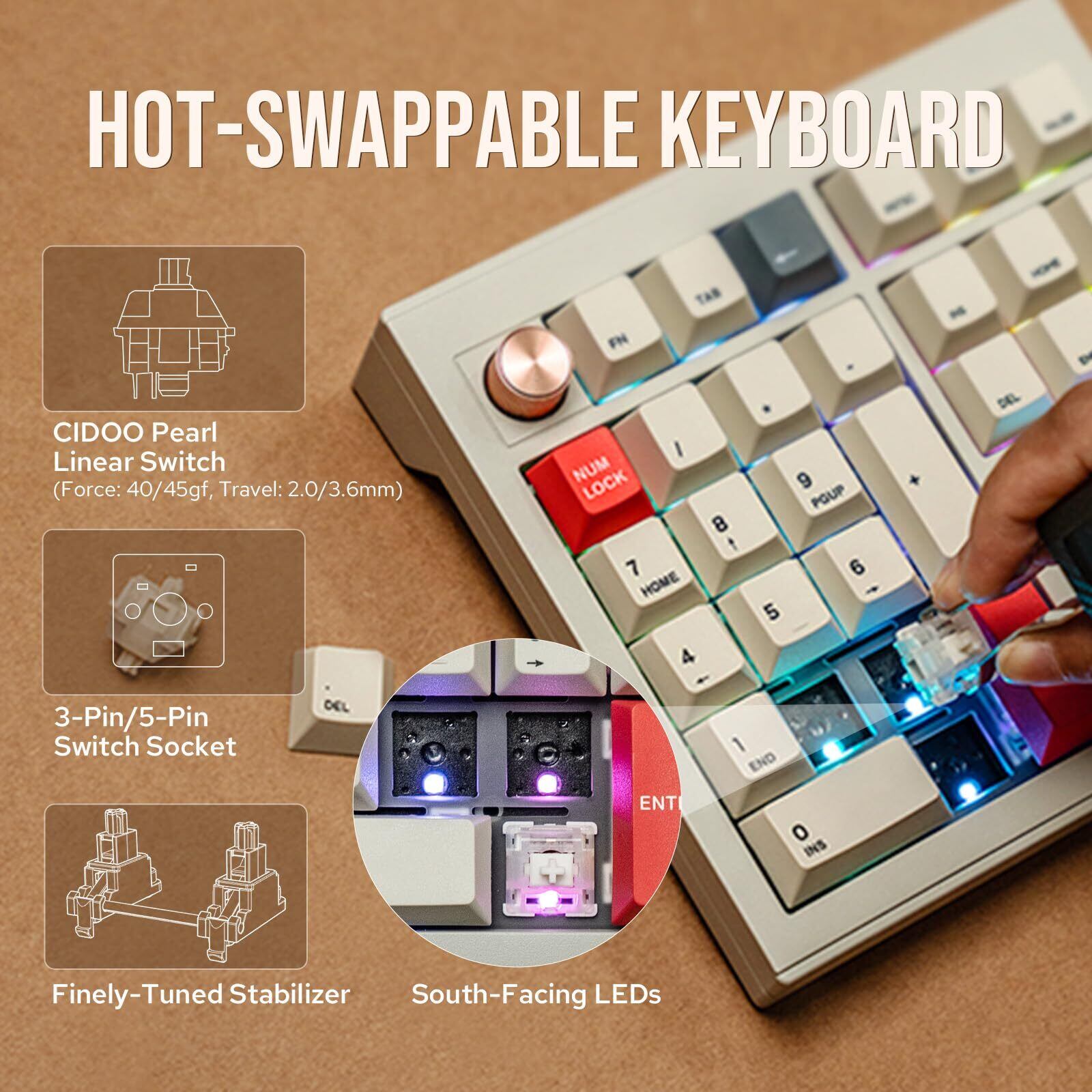 MechLands CIDOO V33アルミニウムワイヤレステンキー VIAガスケットテンキーナビゲーション付きキーパッド 矢印キー ノブWindows/Mac OS/Linux用BT5.0/2.4GHz/USB-C有線接続