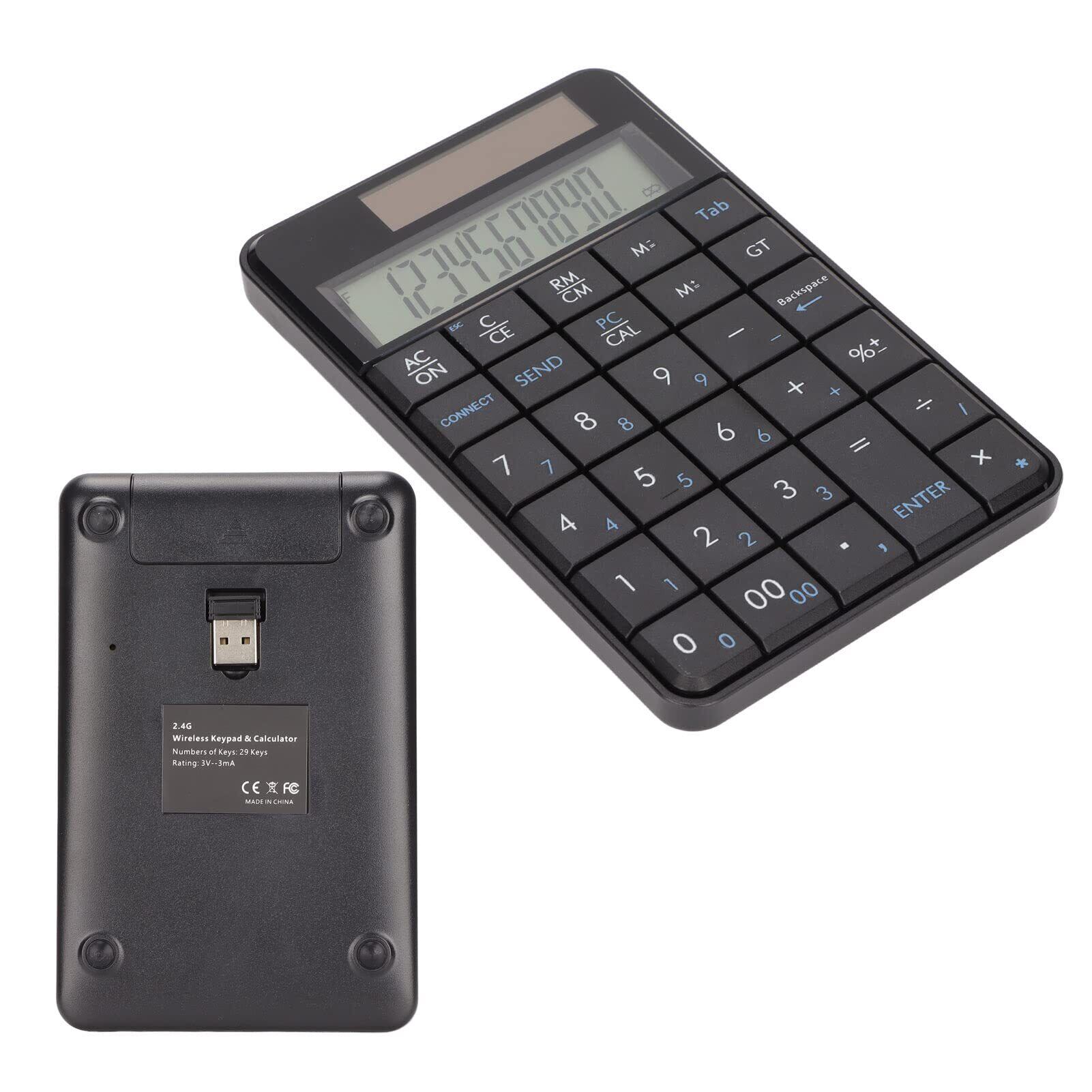 ワイヤレステンキー、29キーテンキー計算機、ポータブル2.4 GHz財務会計番号キーボード、ソーラー充電およびバッテリー駆動、ラップトップ、PC、デスクトップ用