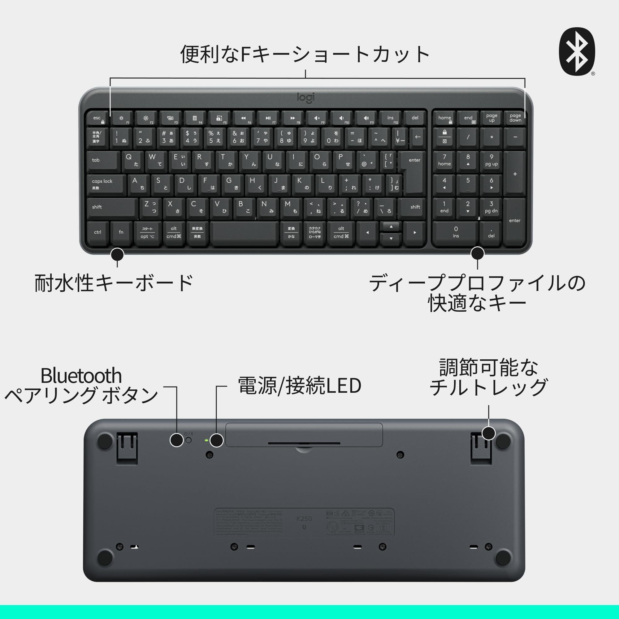 ロジクール Bluetooth ワイヤレスマウス キーボード セット MK250GRd テンキー コンパクト 日本語配列 耐水 無線 ワイヤレス MK250 Windows Mac Chrome グラファイト 国内正規品 ※ 壁紙ダウンロード付き