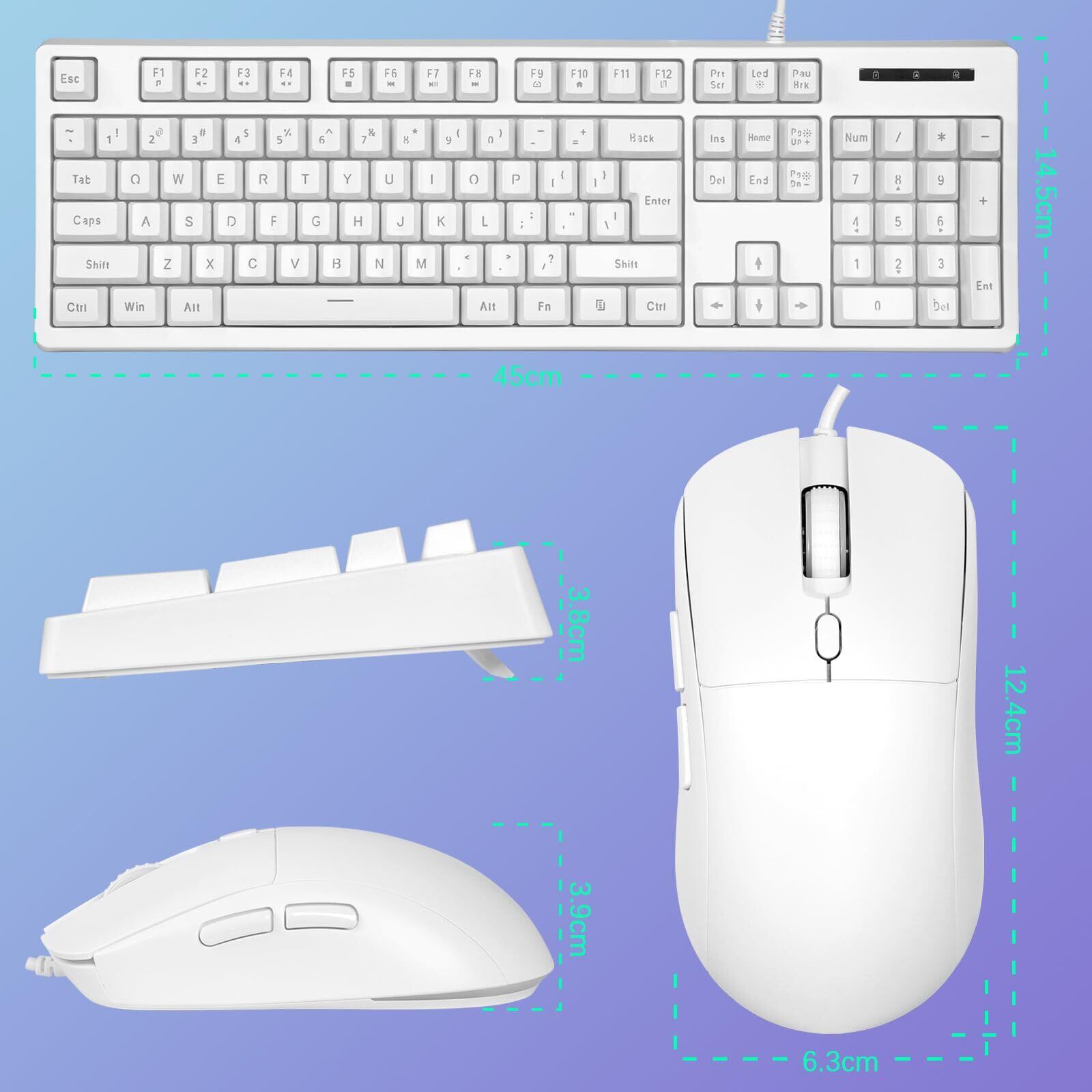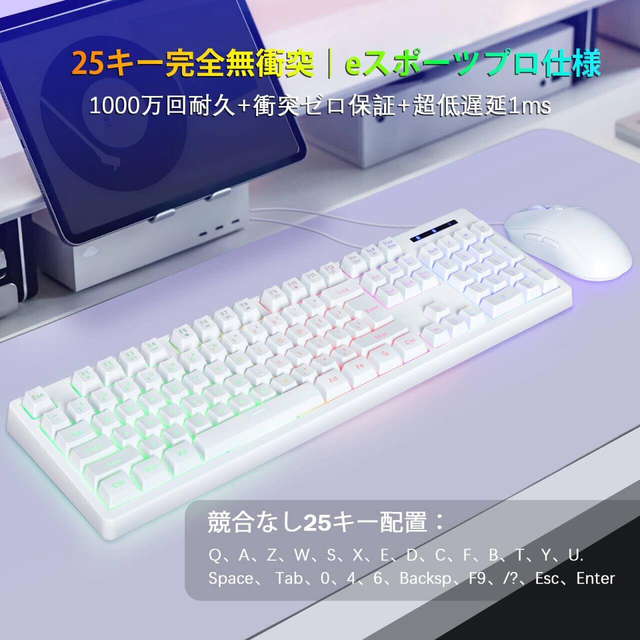 HUO JI ゲーミングキーボード&マウスセット USB有線 メンブレンキーボード メカニカル風打鍵感 静音 RGBバックライト 二重成型キーキャップ 104キー 防ゴースト機能 英語配列 マウスDPI調整可能 夜間作業/オフィス向け PC/Xbox/PS4対応 (ホワイト)