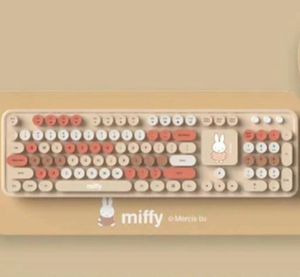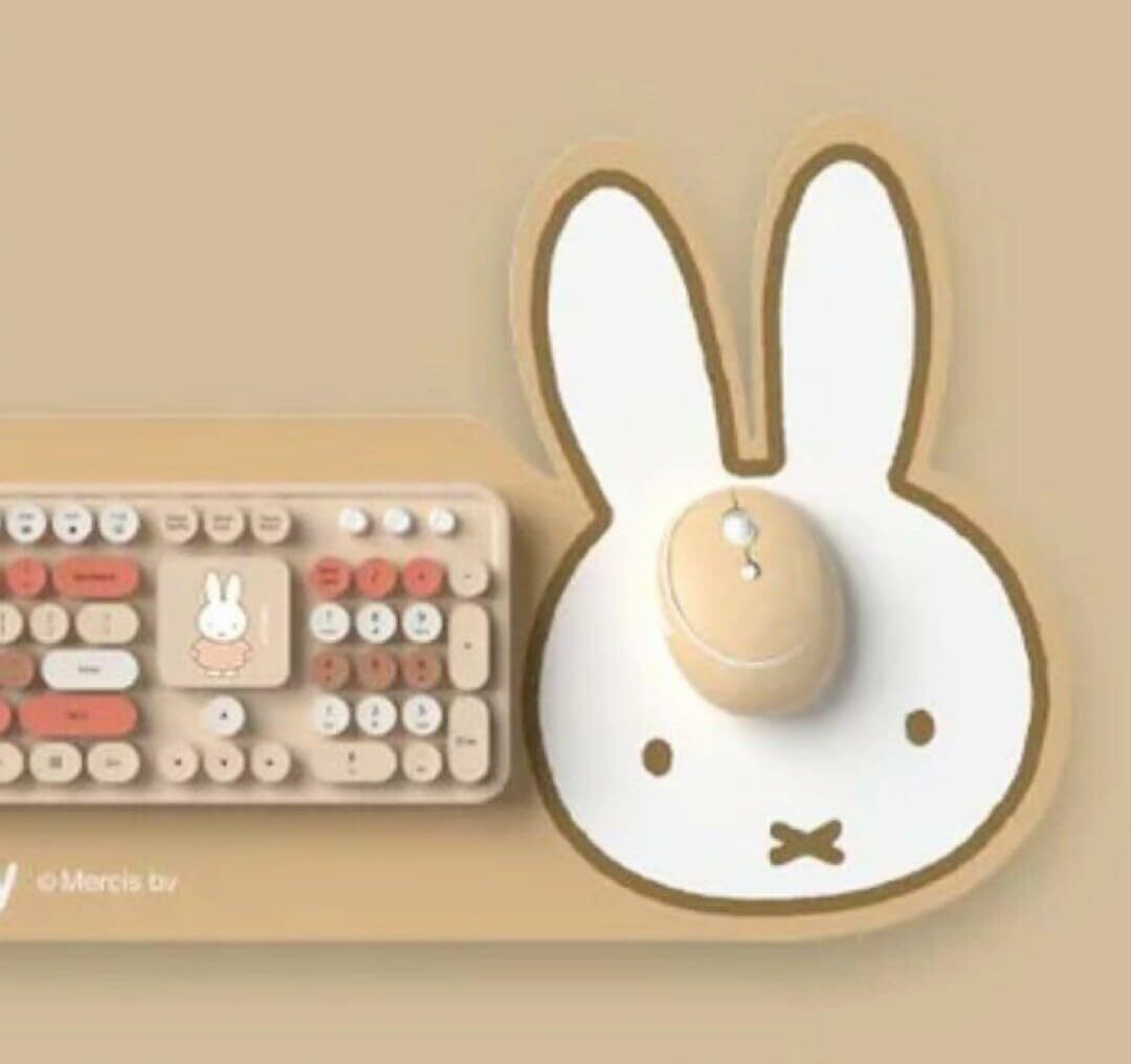 【日本語和訳付】ミッフィー ワイヤレスキーボードとマウス、マウスパッドの3点セット Bluetooth 【ブラウン】 ミッフィー キーボット マウス マウスパッド ワイヤレス 可愛い 大人 新生活 新社会人 PC周辺機器 パステルカラー 無線 コードレス USB接続 静音設計 ブラウン, ベージュ