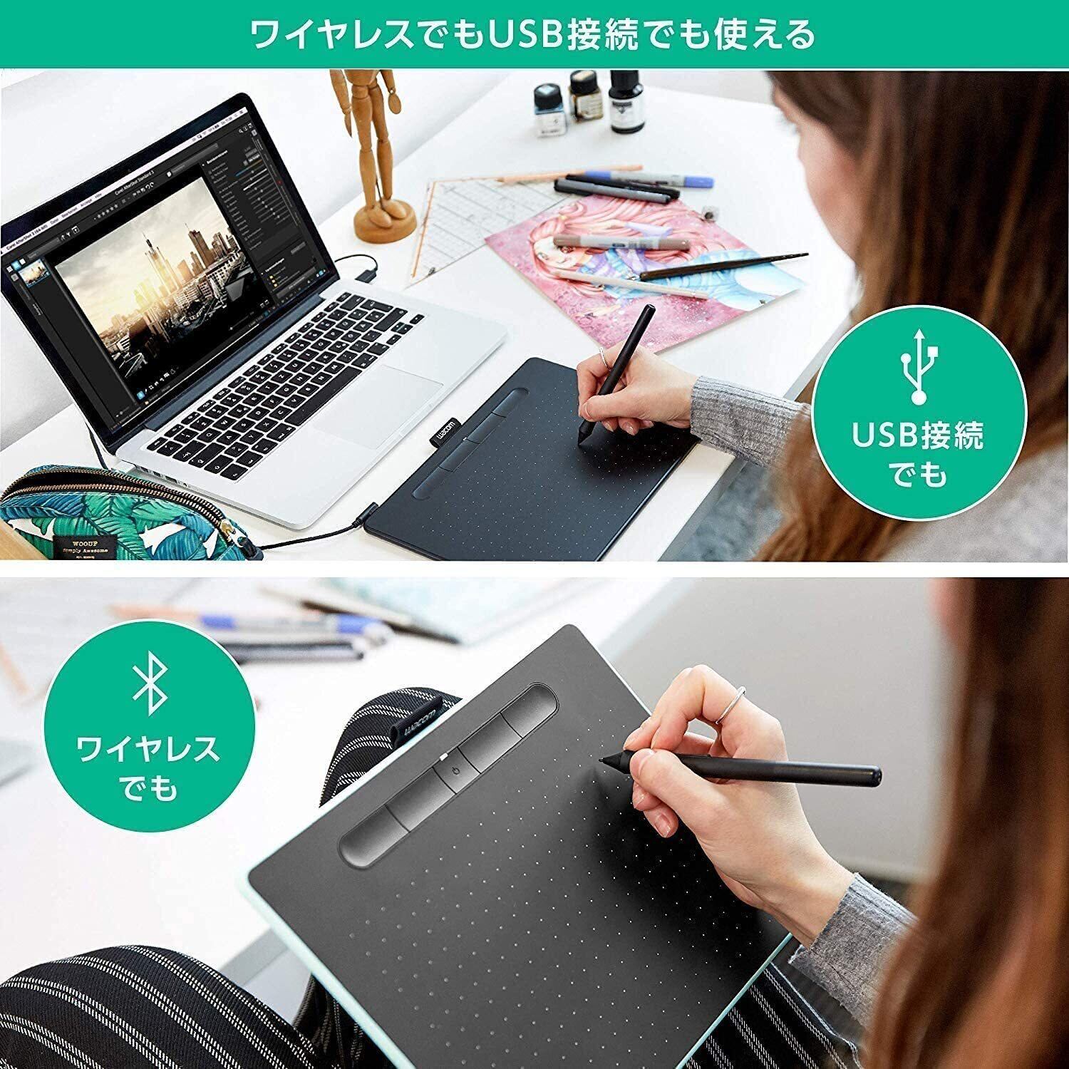ワコム ペンタブレット Wacom Intuos Mediumワイヤレス クリスタ付き 黒 Androidにも対応 データ特典付き TCTL6100WL/K0