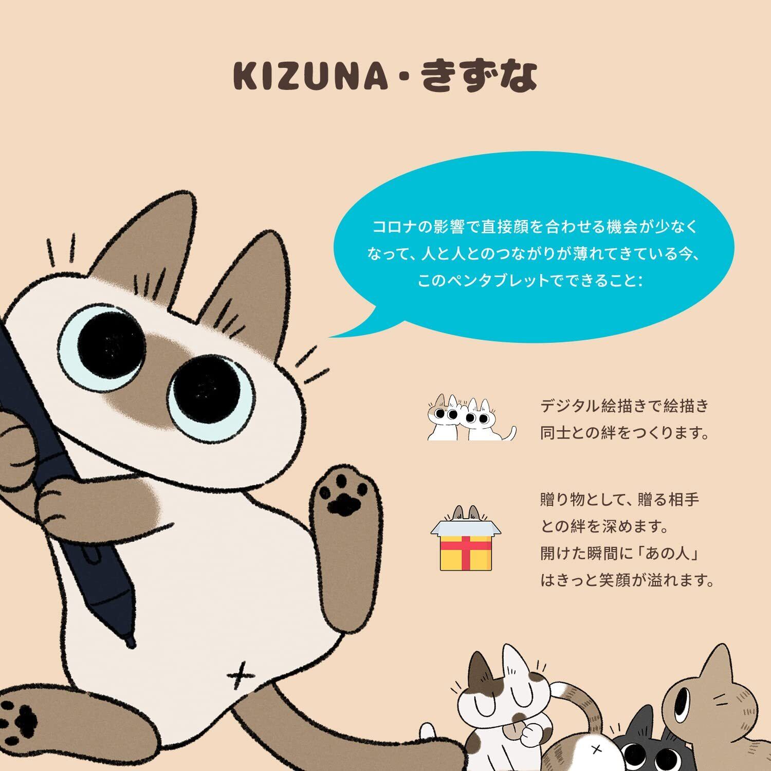 【ギフトに最適な超豪華版】❶日本限定コラボペンタブレット:HUION x のべ子とシャム猫あずきさん。製品本体からパッケージ、付属品、おまけの付箋とステッカー、ドライバーまで全て特別に設計されておりました。作業で疲れた時、レオンちゃんとあずきさんの可愛い姿を見ると癒されますでしょう。❷男女問わず使えるカラー:パッケージはHUION色で、本体裏側は癒しのミルクティー色にしました。❸製品名「KIZUNA」はきずなをつなぐ・深めることを意味していて、大切な人への贈り物に最適です。お絵描き、マンガ、イラスト、オンライン授業、web会議、写真加工・編集、ゲーム、アニメーション、デザイン、3D、書道練習などの分野に関係する方に贈ることをおすすめします。