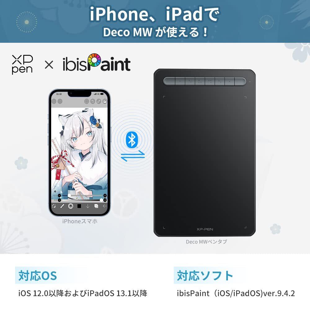 XPPen ペンタブ 板タブ 8x5インチ Bluetooth ワイヤレス接続 Chromebook Androidデバイス対応 スマホ対応 X3チップ搭載ペン付 傾き検知 8192レベル筆圧 エクスプレスキー8個 在宅勤務 イラスト お絵描ソフト付 ペンタブレット Deco MW(ブラック)
