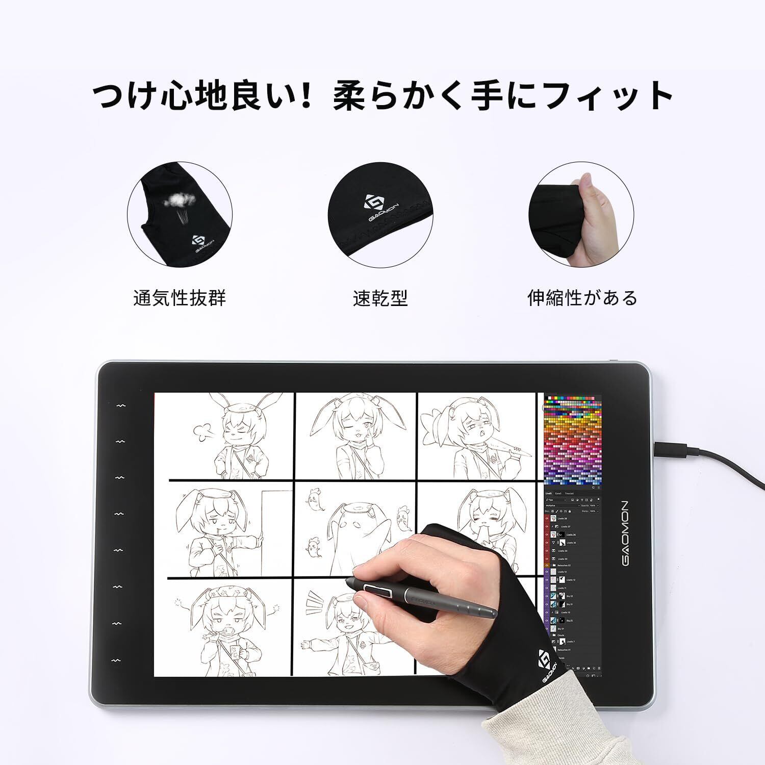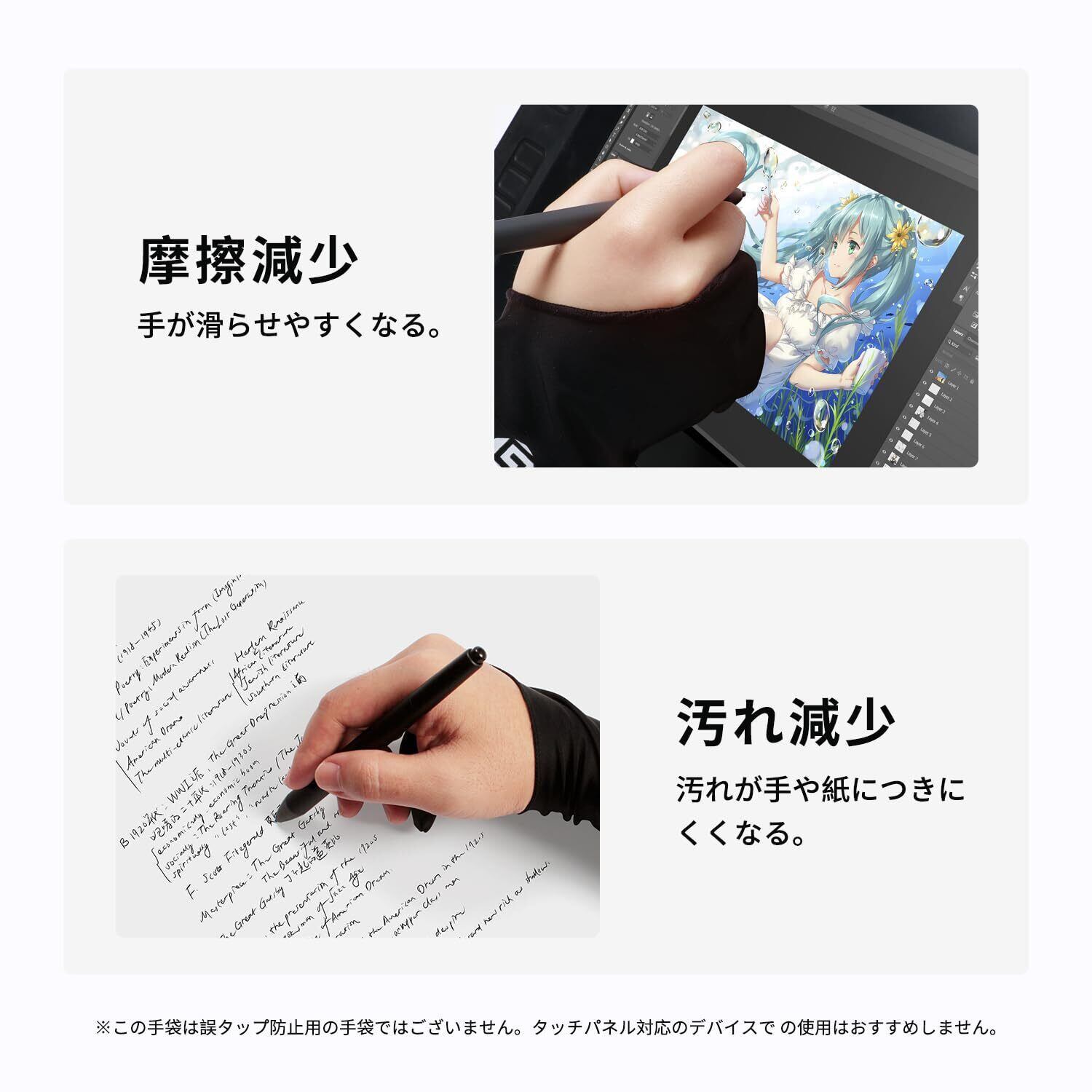 [GAOMON] 二本指手袋 液タブ/ペンタブ/タブレットで使える 絵描き/デッサン/製図 摩擦減少 伸縮性と通気性 左利き/右利き対応 グローブ