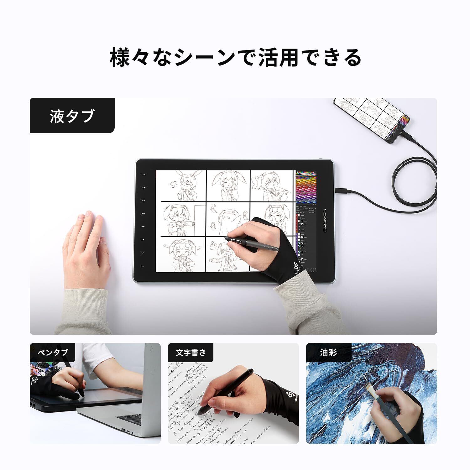アプリケー ション―アーティストグローブはグラフィックタブレット/ペンモニター/ LEDトレースボードでアートを作成する際に広く使用されています。
