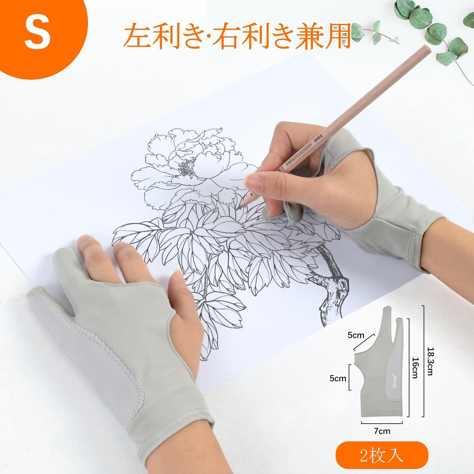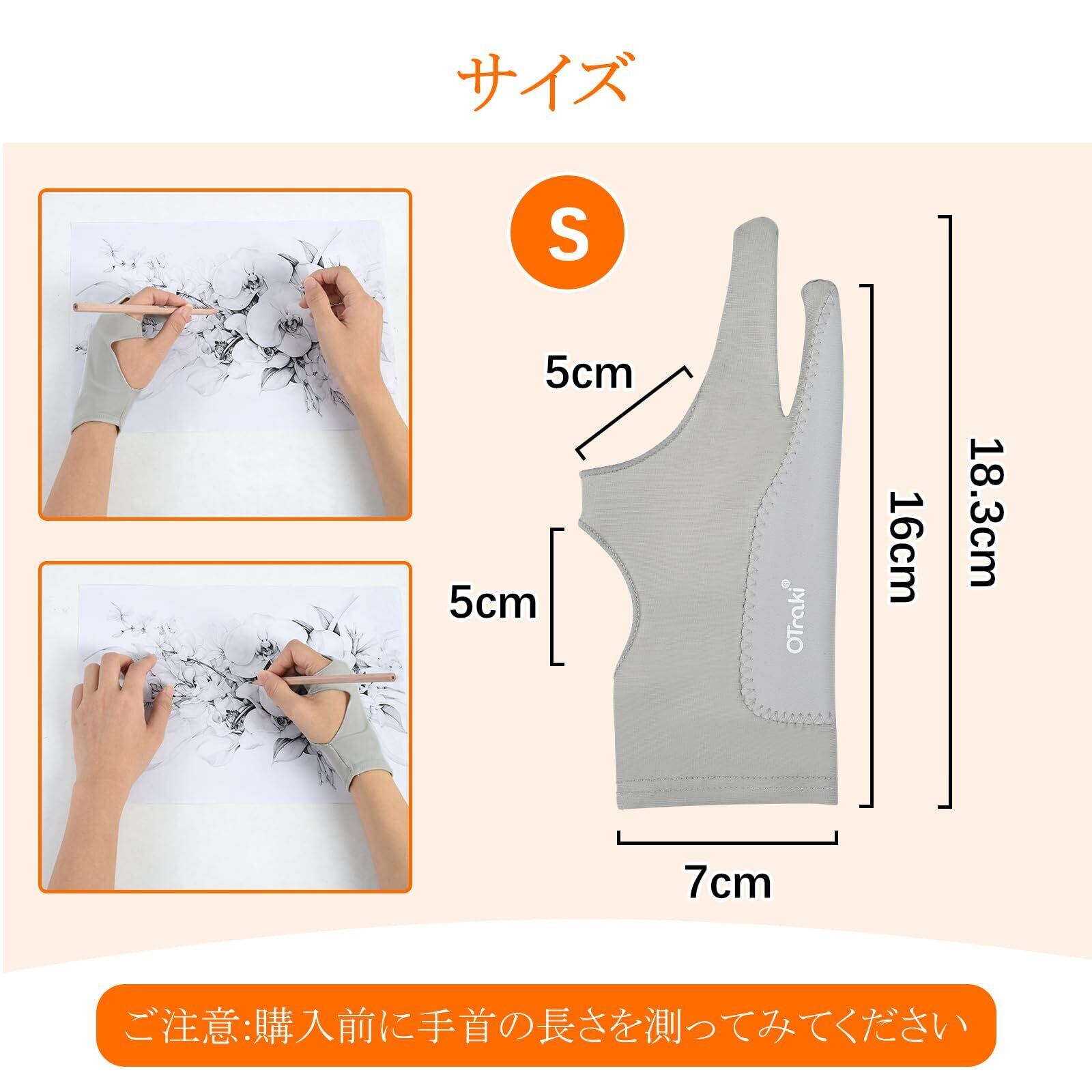 [OTraki] 製図用手袋 2枚入 二重厚手 7x18.5cm 二本指グローブ 誤作動防止 ペングローブ タブレット 防汚 手汗防止 お絵描き ライクラ繊維 通気性 弾力性イラスト用 左利き 右利き 絵画初心者向け グレー