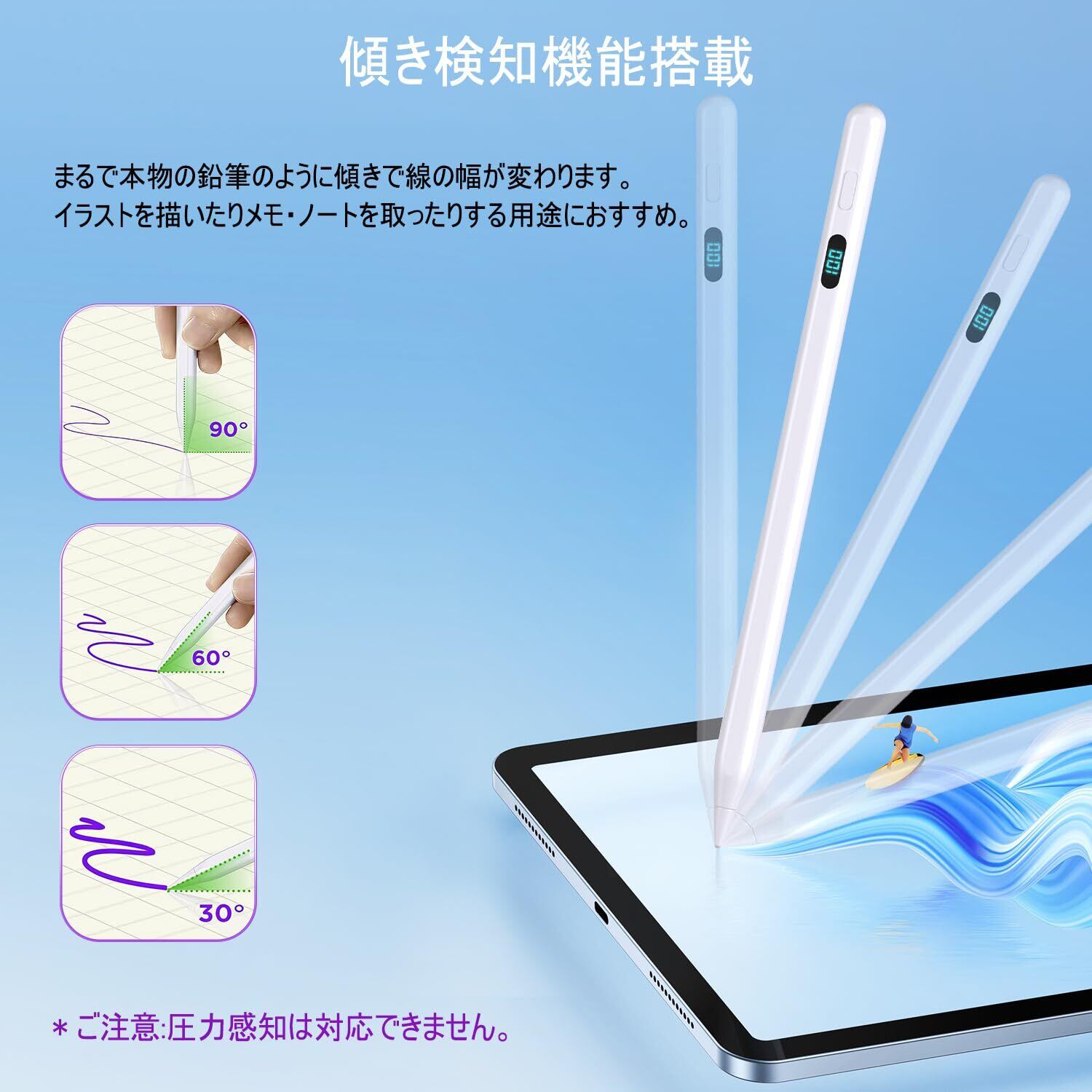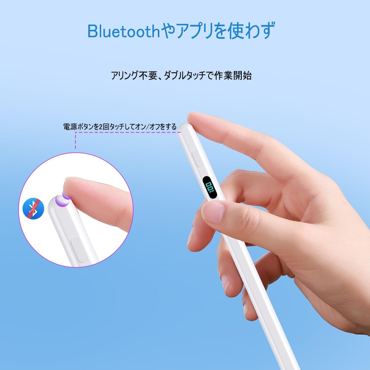 【バッテリー残量表示デジタルペンシル】LEDスクリンに数字でバッテリー残量が正確に表示されます。残量が細かくわかりやすくて、いざ使いたいときにすぐ切れてしまったという事態を避けるiPadタッチペン。