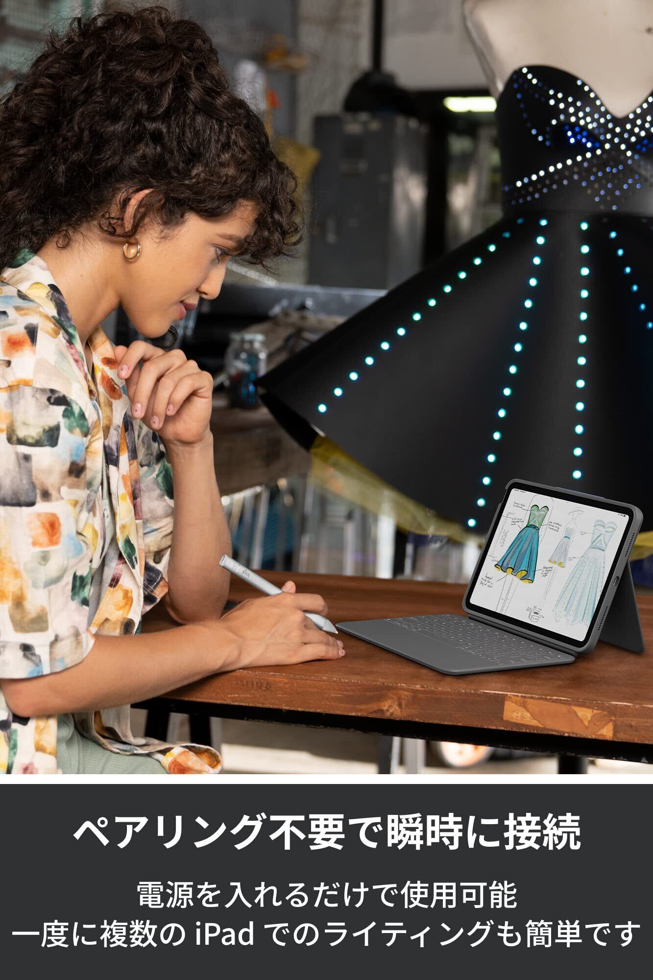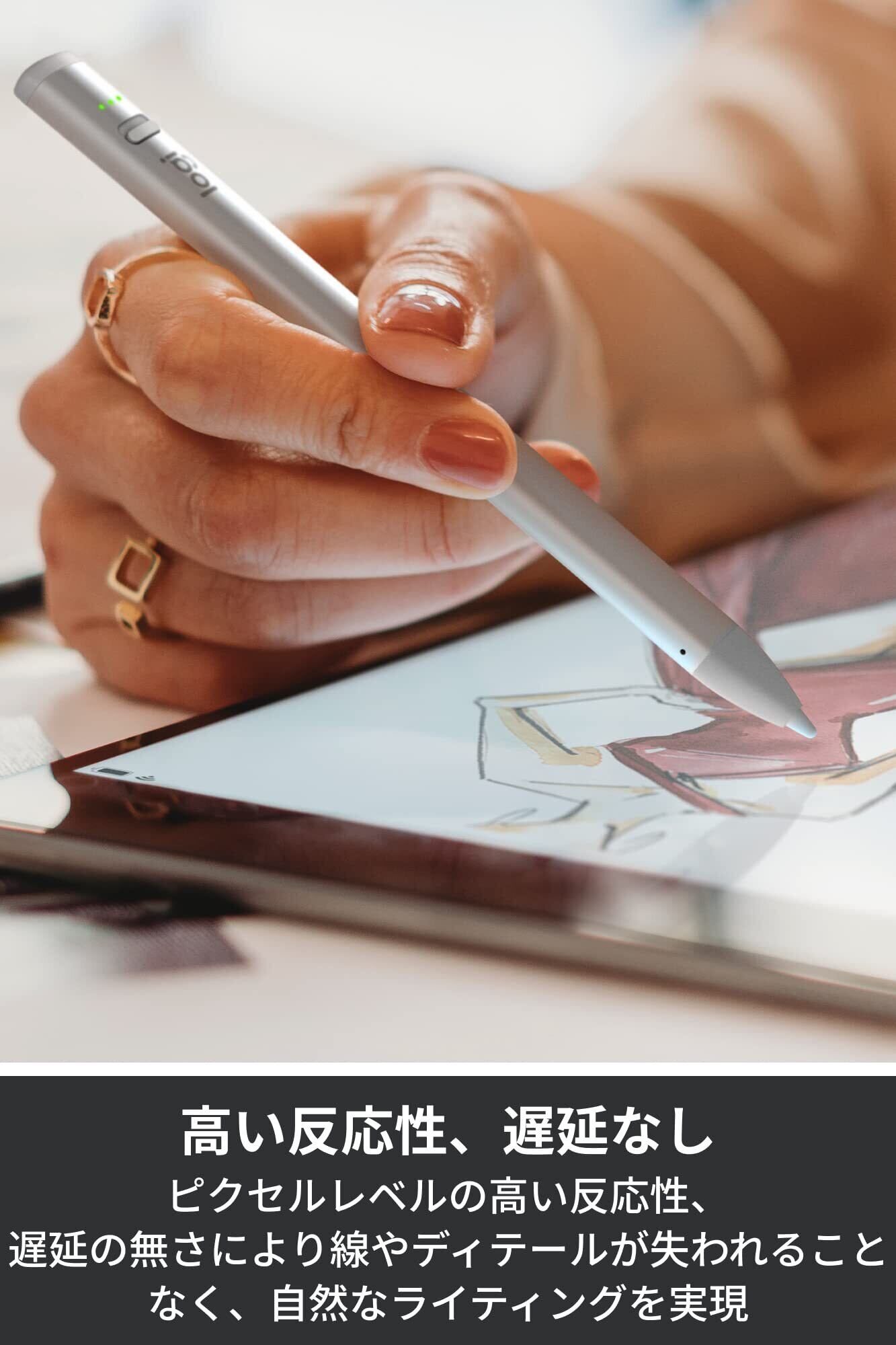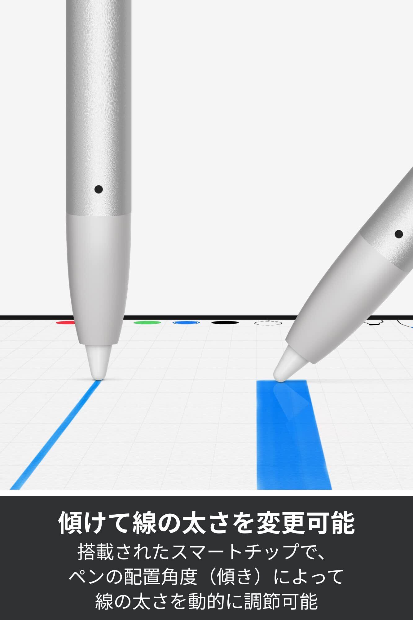 【高精度、遅延なし】ロジクールCrayonはApple Pencilテクノロジーを使用するため、遅延のない反応速度とピクセルレベルの高精度により、1 本の線やディテールも失わずに自然なライティングや描画が可能。パームリジェクション テクノロジーにより手のひらが画面に接触した状態でも描くことが可能。スマートチップを傾けるだけで、線の太さを必要なサイズに自動的に調節できます。